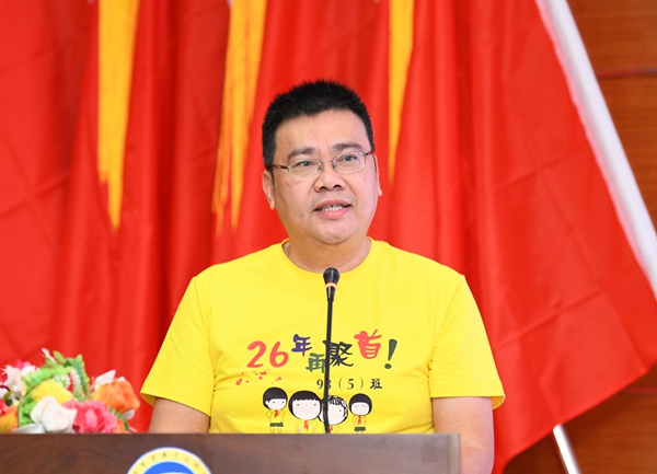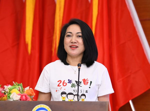 93(5)班班长许飒深情回顾了在母校求学时的青春岁月,对母校及老师们表示由衷的感谢,对学校近年来取得的跨越式发展成果深感喜悦,“海经贸永远是我们心中的红太阳,永远是我们的精神家园。期望母校朝气蓬勃,繁荣昌盛!”。