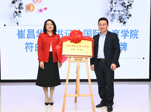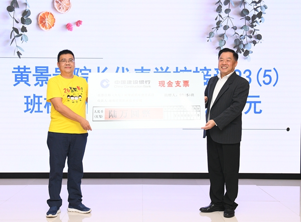 在热烈的掌声中,黄景贵代表学校,接受93(5)班6万元的捐赠支票。崔昌华为符白薇班主任工作室授牌。
