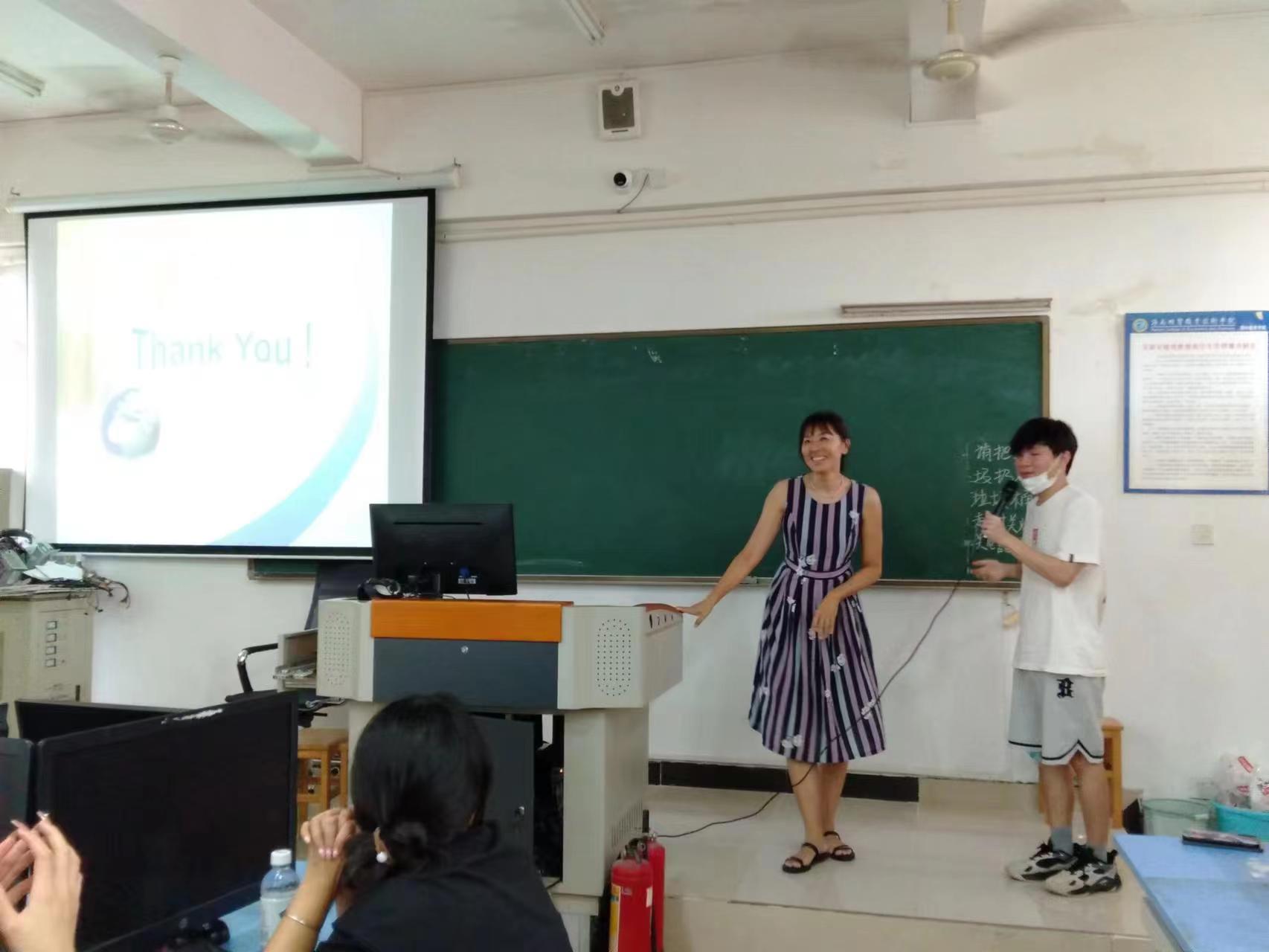 紧接着,外教用幽默的语言,调动了学生极大的日语学习兴趣:林由惠老师表达自己学成东京,日语百分百标准,让大家安心从师;