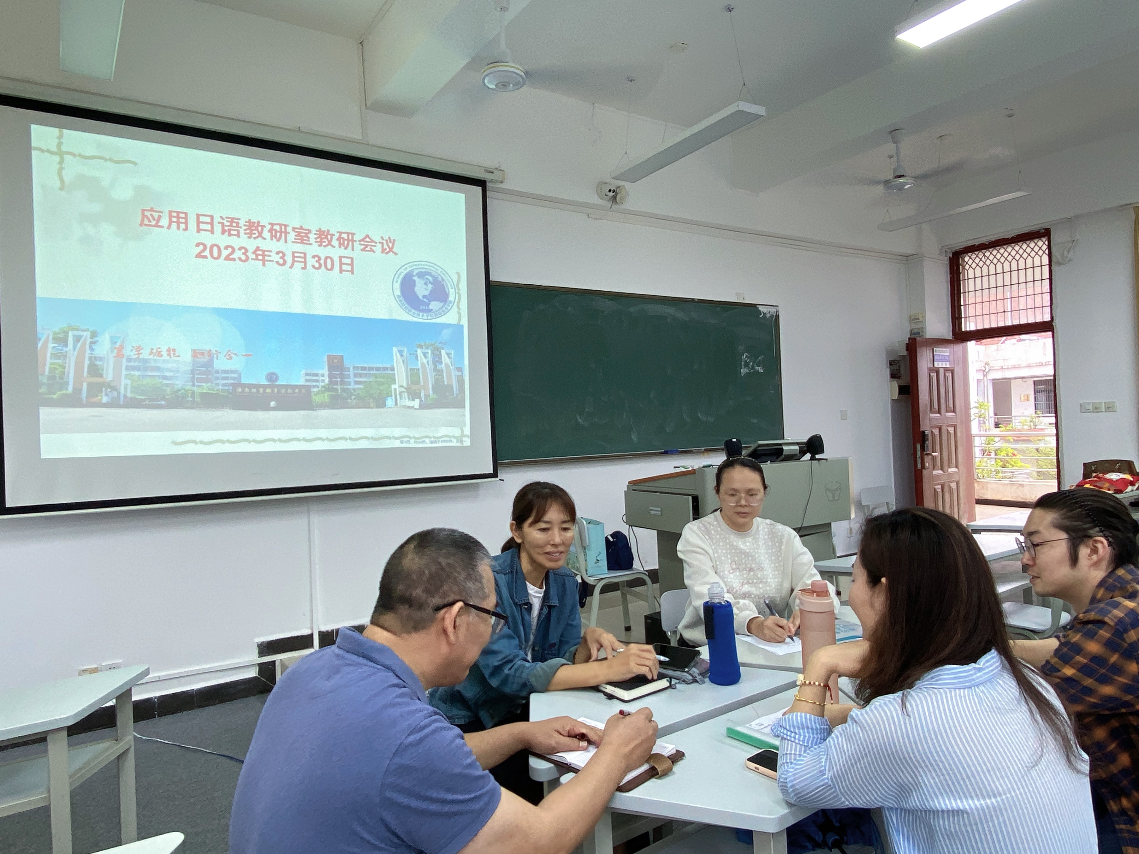 2023年3月30号中午,我院第四次日语教学研讨会于第一教学楼610教室召开。会议由应用日语专业负责人王耀义老师主持。会议讨论了2023年海经贸职业教育周“校园开放日”,我们将通过哪些专业活动展示应用日语专业的专业魅力,以及5月8日的单招流程。