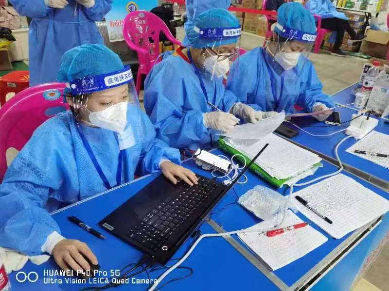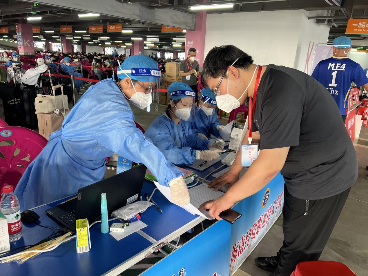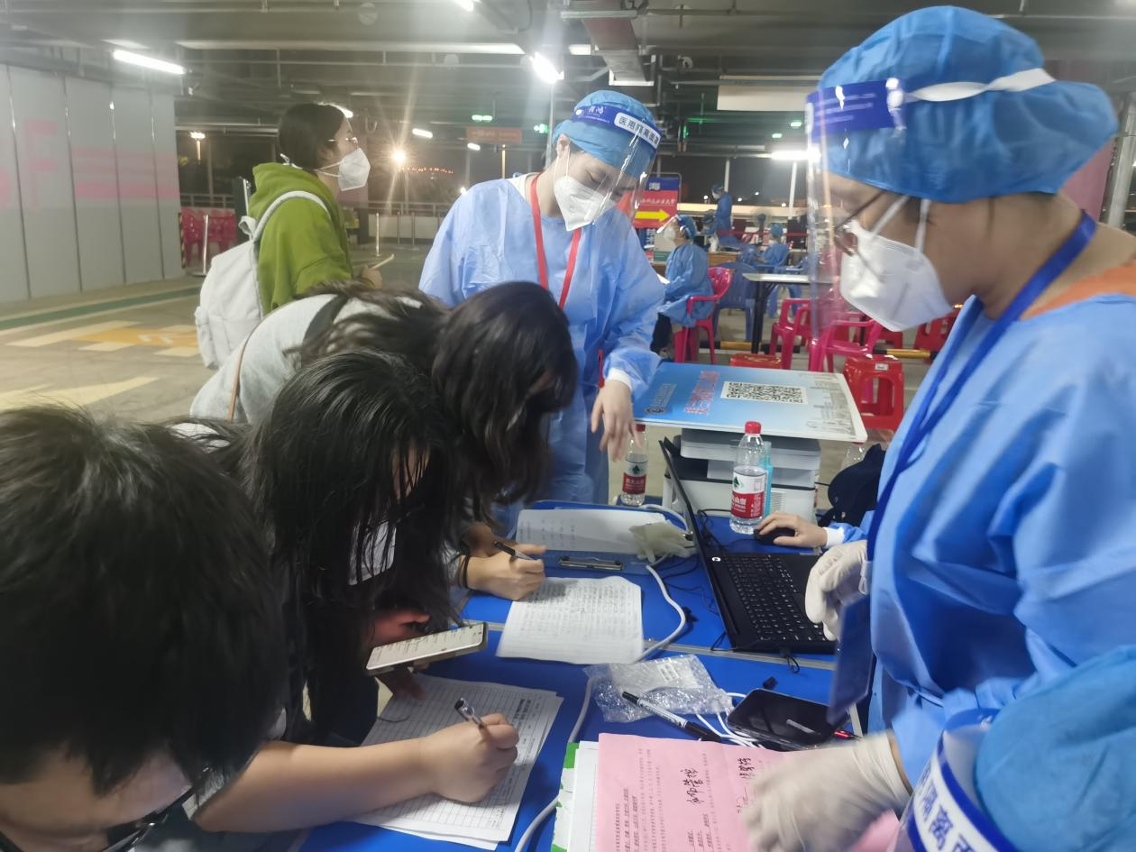 我院教师在学生到校接送点进行核酸采样、登记等工作
