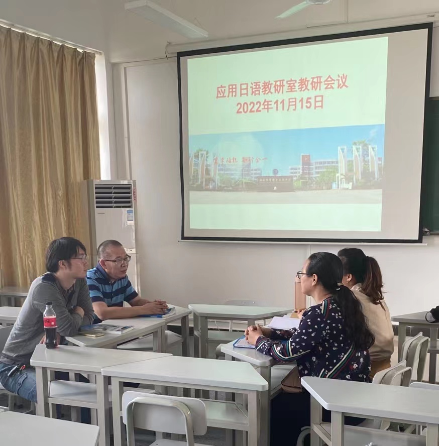为了提高日语教育教学质量,做好线上和线下教育教学工作,提高课堂教学有效性,更好地完成“双导向”双导向基础日语课程教学改革中期检查工作,应用日语教研室于2022年11月15日下午召开教研会议。会议由日语专业负责人王耀义主持召开,日语教师黄金玉为会议记录员,陈小苗老师、外教谷田和丸老师参加了本次教研讨论。