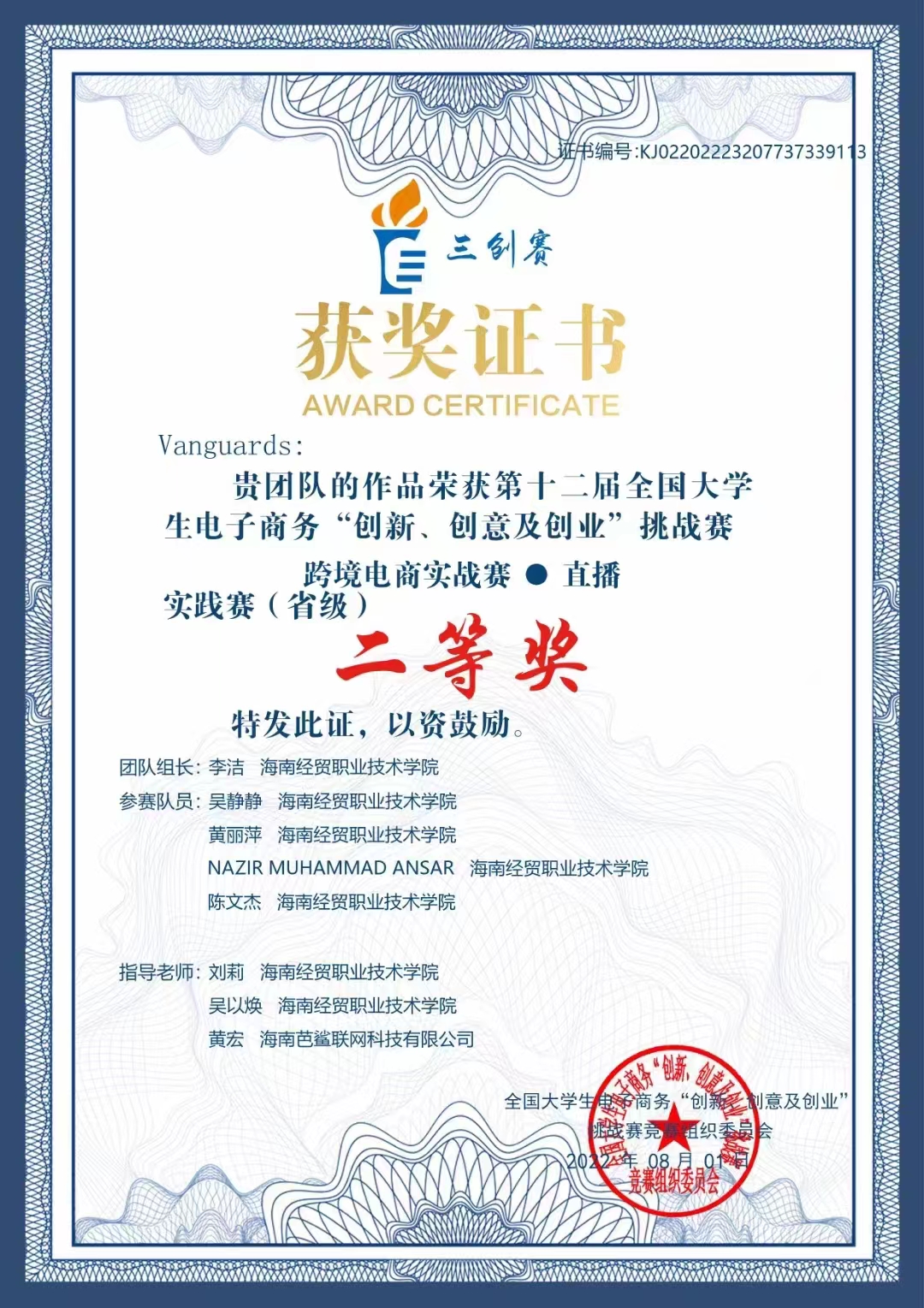 第十二届全国大学生电子商务“创新、创意及创业”挑战赛落下帷幕。海南经贸职业技术学院英国上市公司365刘莉、吴以焕两位老师率队出征的参赛队伍喜获佳绩,荣获跨境电商实战赛 · 直播平台综合赛(省赛)二等奖。