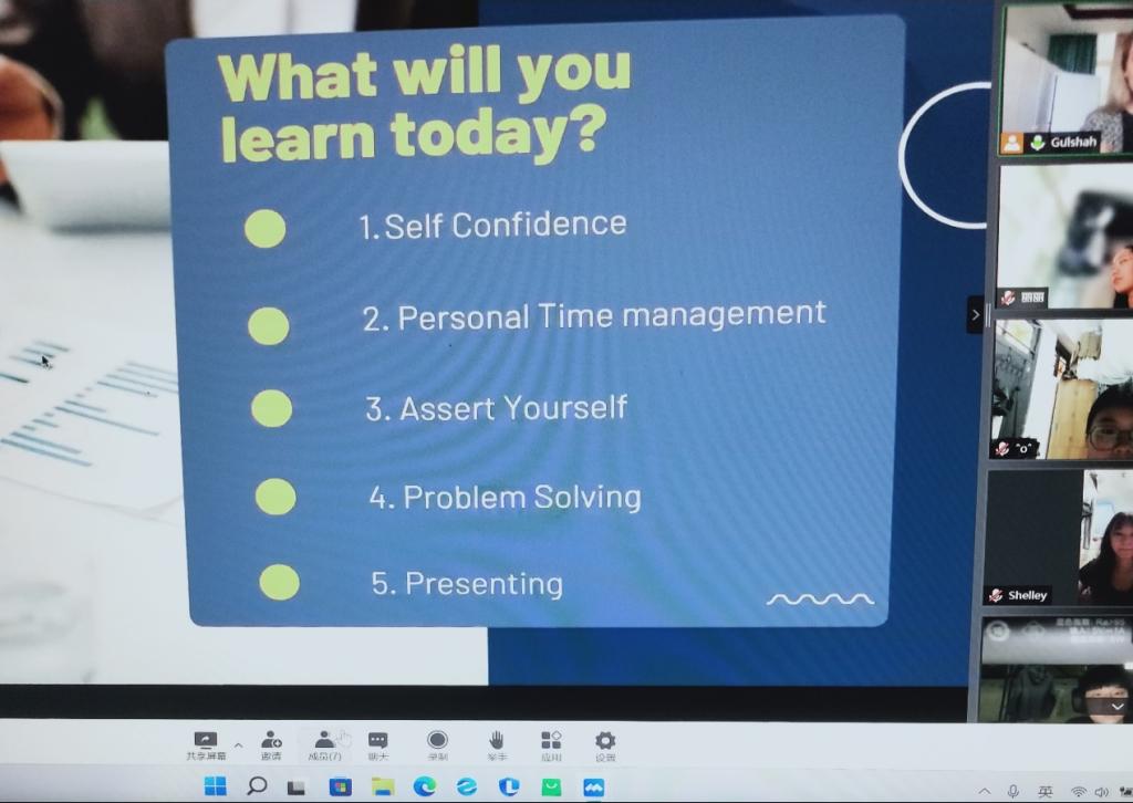 商务+英语特训营主要以“商业技巧和职场知识”为主题展开学习。高级商务培训师Mrs.Gülshah C.Y. - 瑰夏老师,用生动的课件为我们讲解商务活动的各种技巧和知识。尽管因为疫情,我们只能以网课的形式进行特训营教学,但瑰夏老师所展示的商务知识通俗易懂,能让我们一看就会。所以,即使隔着屏幕,专业的商务英语知识特点也如涌泉般汇入我们的大脑,充实我们的知识储备。