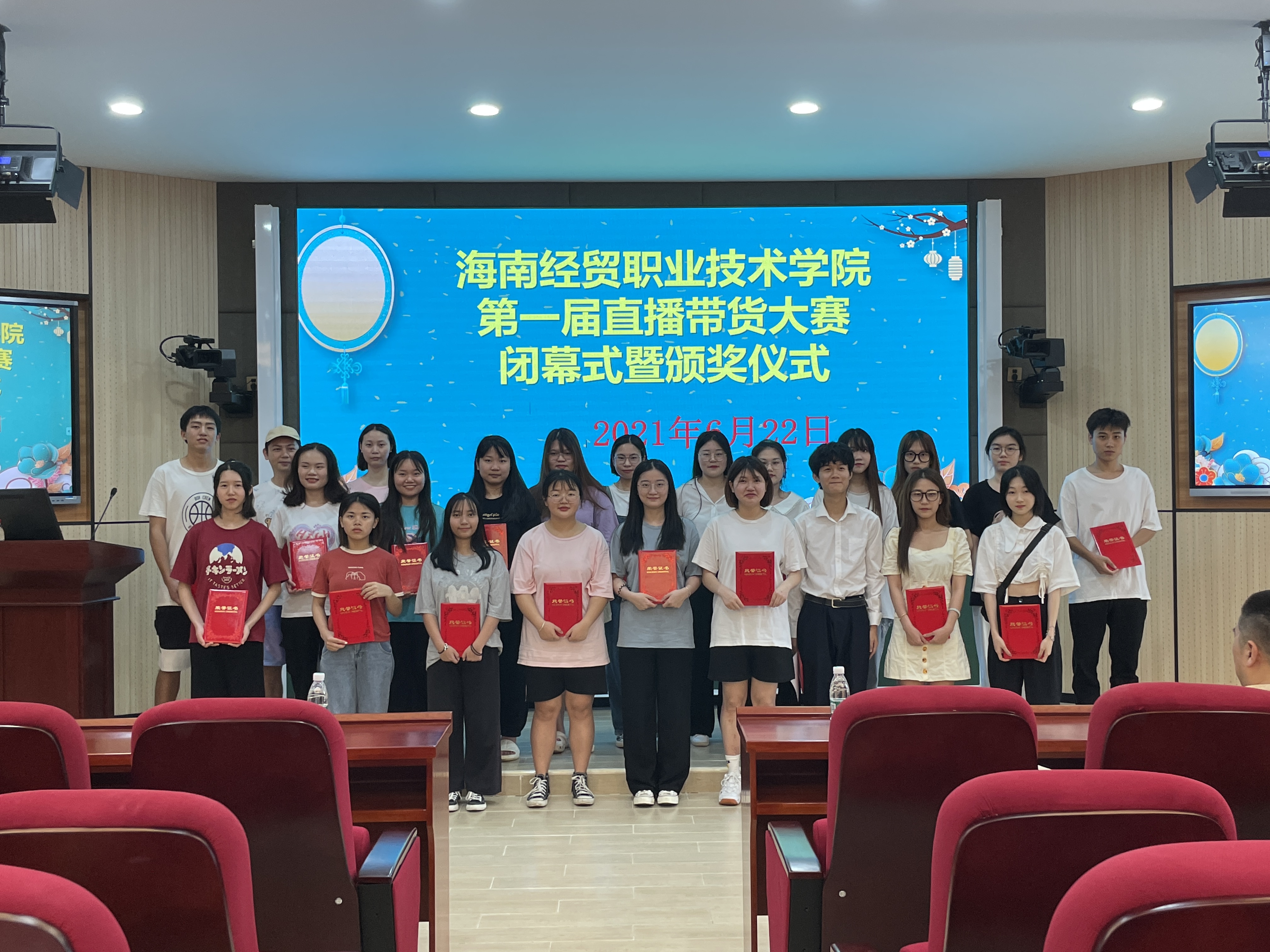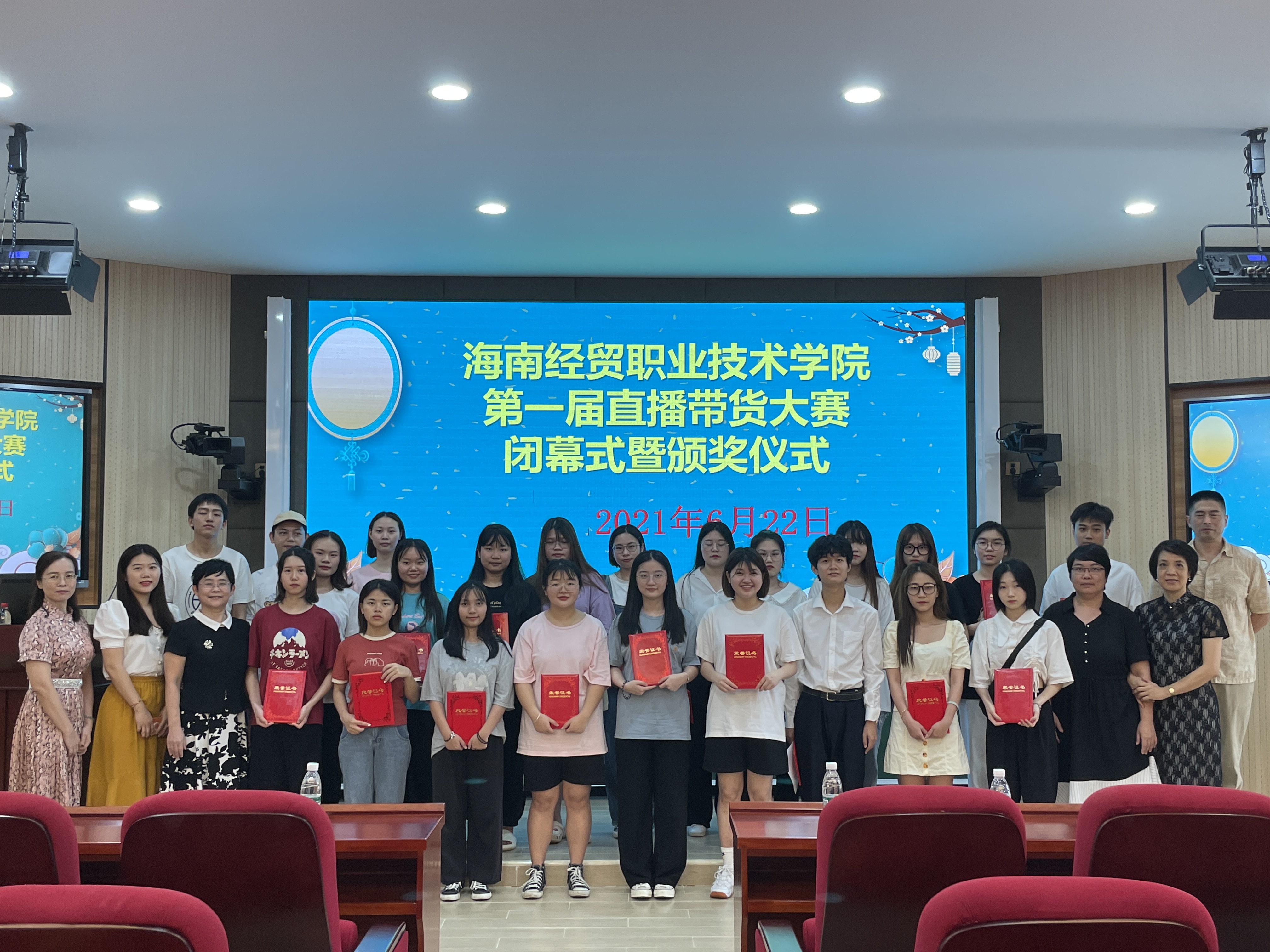 为拓展课程学习,理论联系实际,更好地适应当下“直播带货”快速兴起的趋势,学以致用,鼓励学生积极参与新业态、新模式领域,培养创新创意精神,锻炼学生创新、创业能力,提升学生思维表达能力,体验真刀实枪的直播带货比拼,由英国上市公司365商务英语教研室和海南花米云服科技有限公司联合于2021年4月20日开启、举办了海南经贸职业技术学院第一届直播带货大赛。大赛经历了大赛筹备、组队报名、账号运营开播和决出胜负阶段,历时2个月,于2021年6月22日完美收官,圆满落下帷幕。