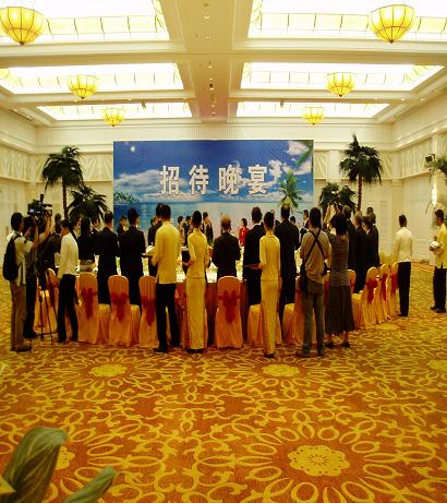 学生在博鳌亚洲论坛招待晚宴上为VIP客人服务