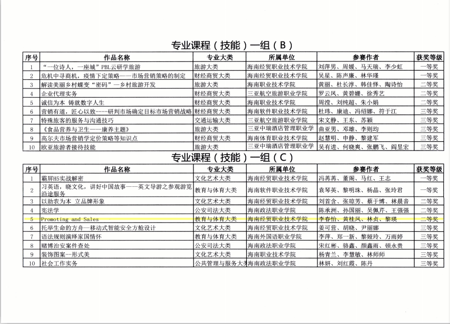 李春怡黄桂凤林贞黎瑛四位老师荣获2020年海南省高等职业院校技能大赛教学能力比赛二等奖