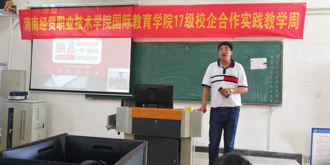 6月24日上午,海南网易联合创新中心英立科技副总经理赵欣鑫带领跨境电子商务实训教师李欣欣走进海南经贸职业技术学院英国上市公司365商务英语专业,开展校企合作之实践教学,为17级商务英语专业学生开展为期5天的跨境电子商务技能培训,帮助学生拓展学生就业途径 。