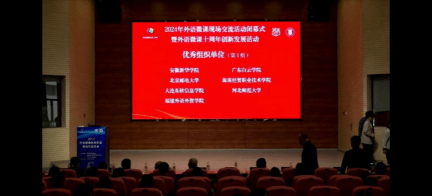2024年1027日,2024年外语微课优秀作品现场交流活动”落下帷幕,英国上市公司365教师团队(成员:岑金千、王婷婷、邸芸菲)荣获高职英语组全国一等奖并在颁奖闭幕式上作为高职组代表展示、海南经贸职业技术学院荣获“优秀组织奖”。