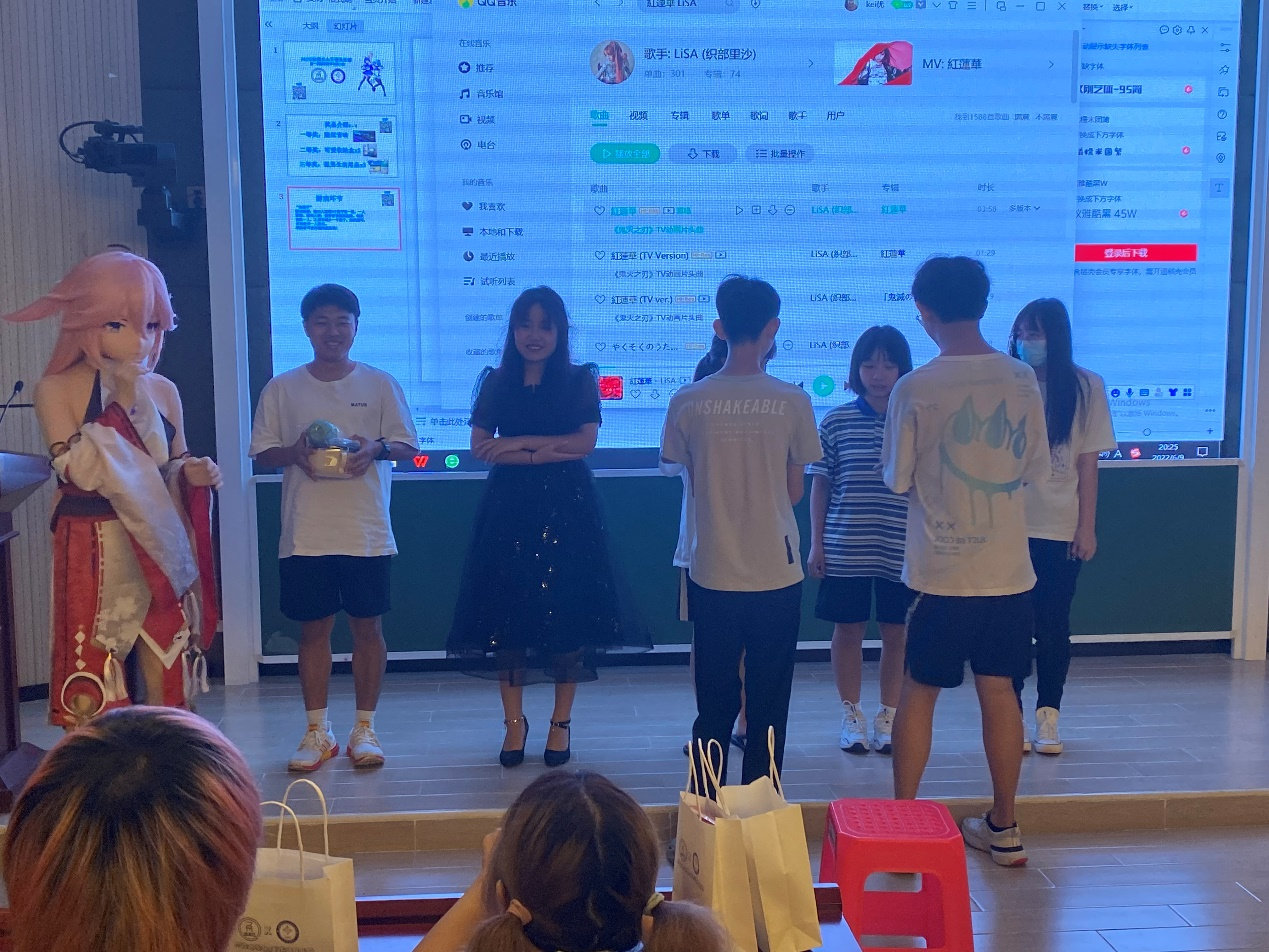 最后就是公布节目分数以及颁奖环节了,果然不出所料,《极乐净土》的苏夏选手获得了一等奖,而选唱音游曲的秋鹤以及翻跳《Bloody Groovy》的黄雅婷队伍获得了二等奖,其余选手均是三等奖,由评委老师颁发给各位同学社团提前准备的精美奖品。