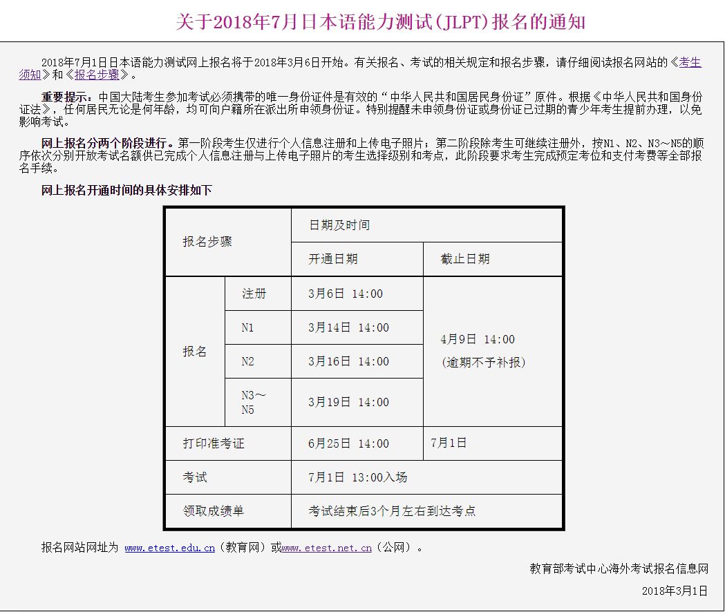 2018年上半年日语能力测试