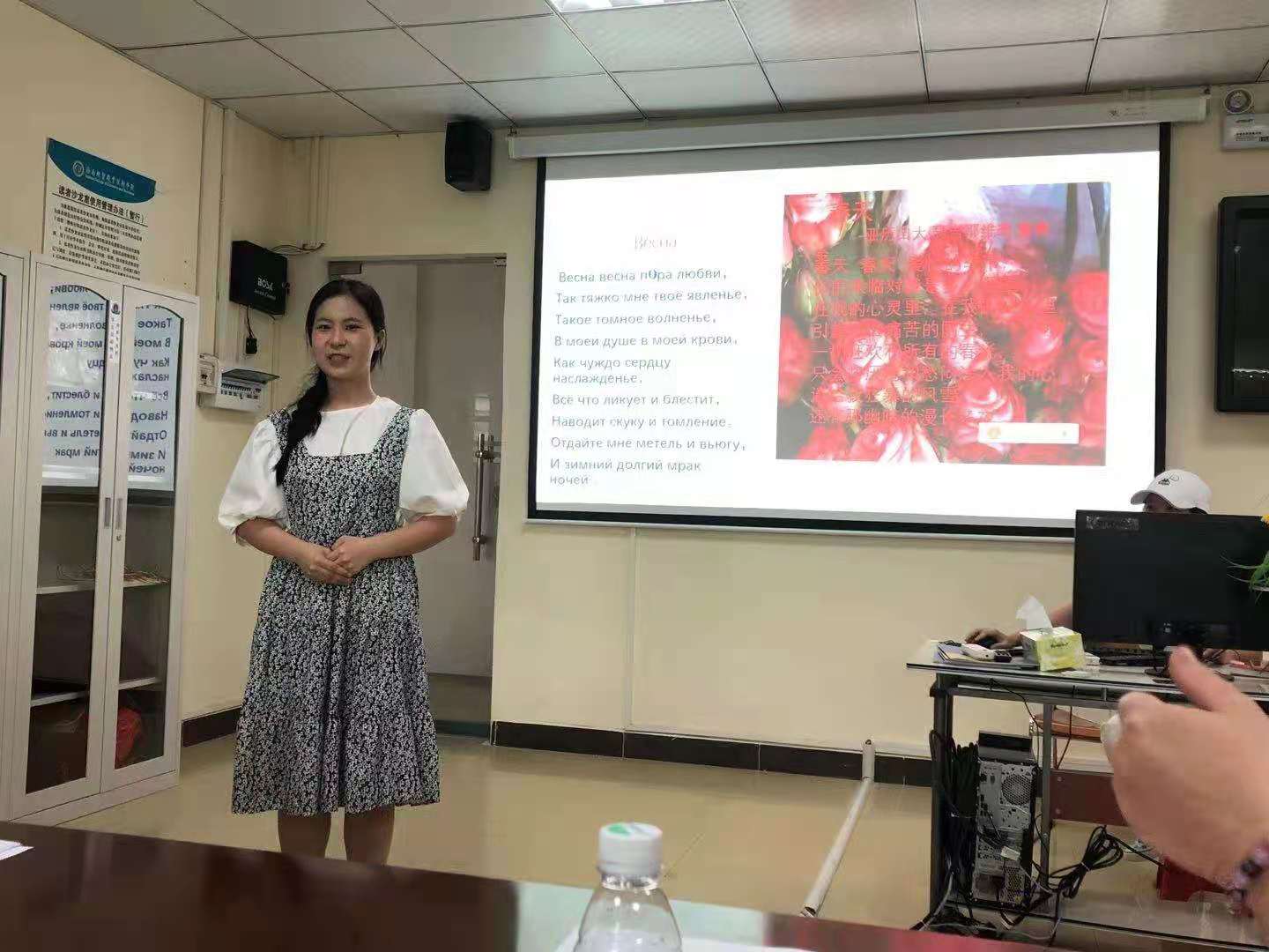 2021年4月27日下午,我校第二届俄语诗歌朗诵比赛在图书馆二楼乌拉尔学院会议室正式举行。该大赛由俄语教师黄梓瑶、外籍教师阿纳斯塔西娅策划并组织,应用俄语专业教研室所有中外教师担任评委,共23名学生参赛。