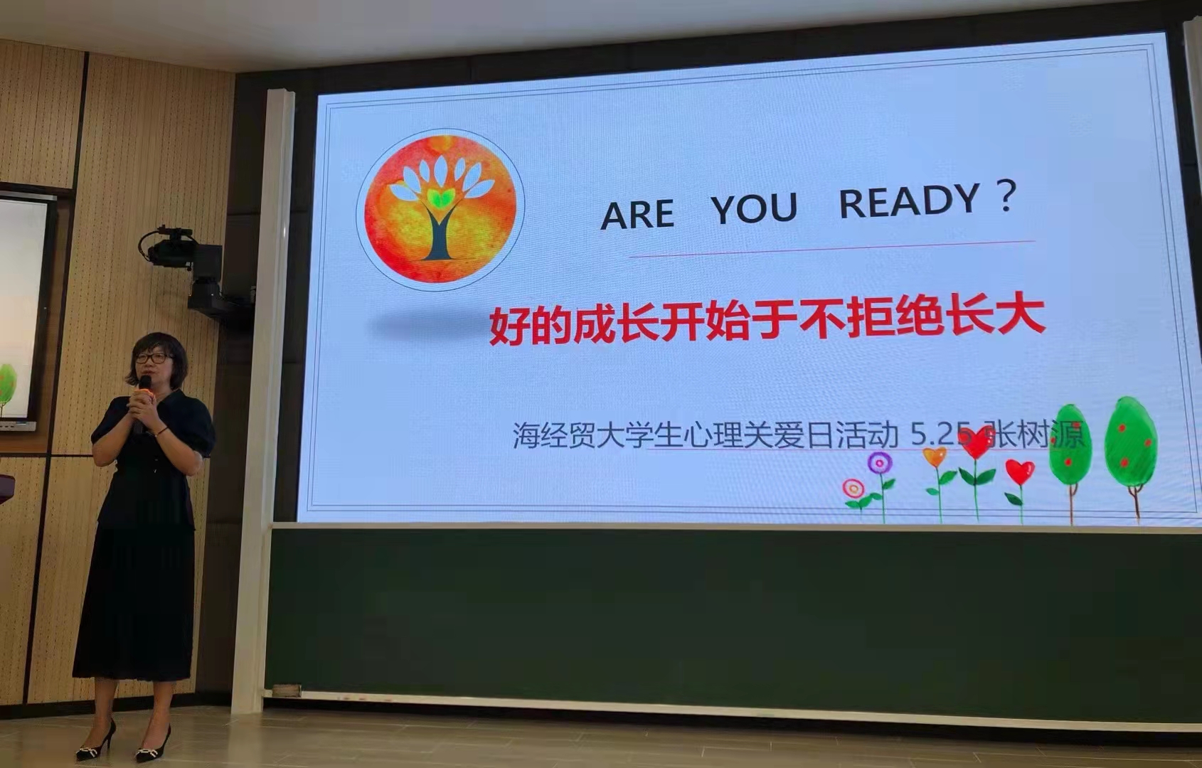 2021年05月25日(周二)14:30讲座准时开始,19级200多名学生参加,本次大学生心理成长课程包括我是谁--大学生自我认知;心智成熟之旅-大学生心智成长;我的未来不是梦-大学生社会适应三个部分。如何过好人生?张老师问题一出,同学们积极回答,从他们的回答中不难看出大家对自己人生的规划和期待。美丽的童话(广袤的魔法森林里有一群小动物,故事的主人公是一只小兔子,小兔子每天蹦蹦跳跳,在老虎爸爸和蜜蜂妈妈的抚育下茁壮地成长。小兔子一天天在长大,心中也慢慢升起了一个疑问:为什么我是一只小兔子,但是我的爸爸是一只老虎而妈妈是一只蜜蜂呢?有一天,它向爸爸妈妈提出了这个问题,爸爸说:“我们这个魔法森林里的每一只动物都有一次特别的魔法权利,那就是你可以选择成为你喜欢成为的动物。”“那你们认为我应该成为什么动物呢?”小兔子困惑地问)我是谁,我要过怎样的生活?会场突然安静了很多,大家都在沉思,是啊!我要过怎样的生活?