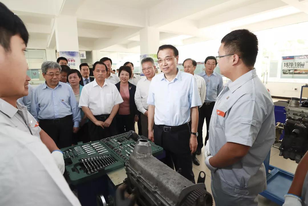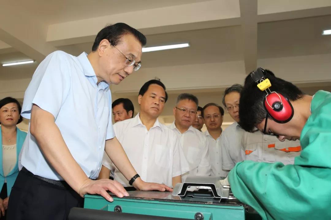 李克强总理3月27日上午到我校考察。今年《政府工作报告》提出,要改革完善高职院校考试招生办法,大规模扩招100万人。总理关心地询问扩招计划、师资及毕业生就业收入等情况,并与实训车间里进行发动机维修、钣金操作的学生深入交流。李克强勉励同学们说,国家不仅需要高端科研人才,也非常需要高技能人才,希望你们更加注重坚守专业精神、职业精神和工匠精神,努力顶起中国制造的脊梁。