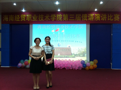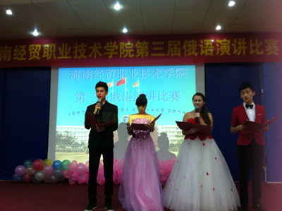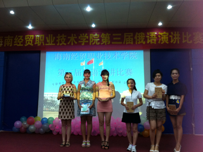 俄语专业教师及外籍教师作为评委应邀出席比赛。经过初赛、复赛的几轮选拔与评比,共有十名同学进入决赛。整场比赛分为演讲环节、问答环节及才艺展示环节。应用外语系朱琳书记表示,这样整合起来的内容非常好:“这样使得活动内容充实,丰富而多样。可以看出同学们下了很大的决心,辅导老师也很辛苦,指导了很多。。。这样的相互提高是特别让我们高兴的。”在谈到俄语专业的就业前景时,朱琳书记表示,目前总体来看,俄语专业的就业前景是被非常看好的。博鳌亚洲论坛期间,由俄罗斯副总理带队的30人代表团队就是由我院选拔出的学生作为志愿者来进行服务的。另外,俄语在旅游,外交,娱乐等多行业多领域,都属于抢手专业。而我们学校,正是为学生和社会架起了一座人才输送的桥梁。愿意出国的学生,可以在老师的指导下明晰自己的目标,可以考俄罗斯的大学进行深造,还可以有机会享受到公费留学交换的待遇。这对于学生的专业学习和内涵素质的提高有这极大的益处。
