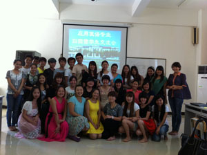 2013年6月19日,一个艳阳高照的日子,海南经贸职业技术学院应用外语系俄语专业全体在校师生团圆啦!在美丽的语音室里我们开展了“应用俄语专业留学生回国交流会”。本次交流会由专业指导老师周丽霞和陈齐有为主持,10、11和12级全体在校学生参加。