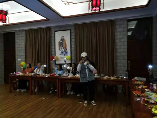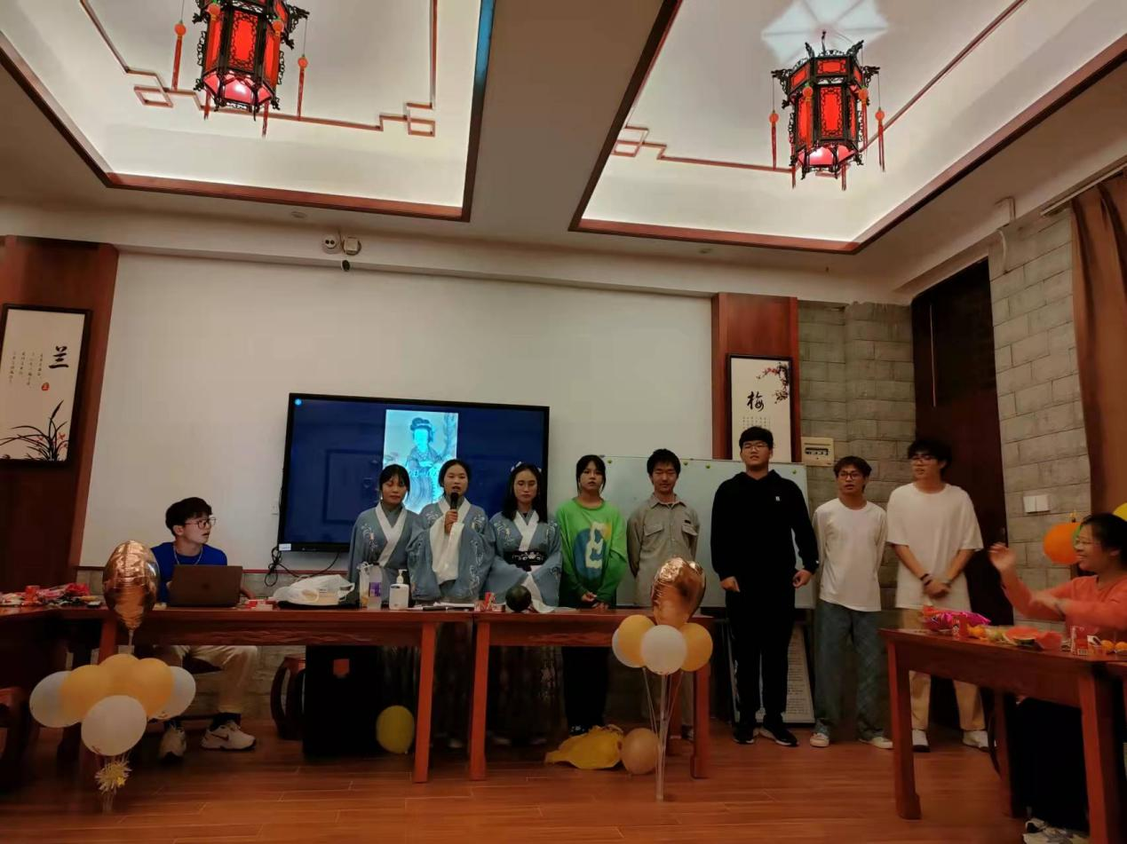 导演兼主持人王轩双语在主持,DJ黄奕林在默默工作。 你是否想过古人穿越海经贸会发生什么有趣的事情,宣传部门带来的《李清照梦回海经贸》。 他们的队名:绿叶,口号:Nothing is impossible. 队歌:团结就是力量。 美食部:芒果的吃法。