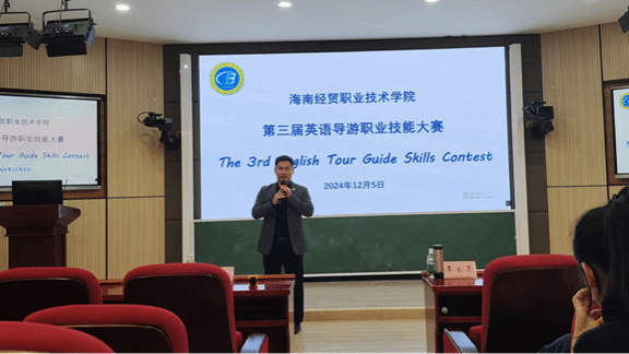 英风携景语,英导赛绝艺!2024年12月5日,海南经贸职业技术学院第三届英语导游职业技能大赛在 1 - 421 圆满举行。本次大赛以海南著名景点为主题,充分展现了旅英专业特色与地方文化魅力的深度融合。