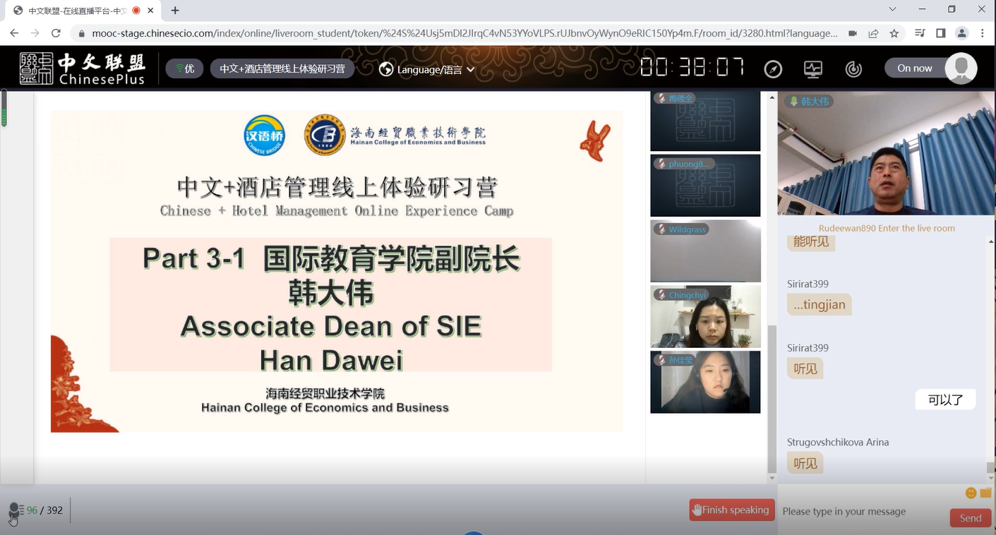 海南经贸职业技术学院2022年“汉语桥”线上团组项目 ——“中文+酒店管理”线上体验研习营顺利结营