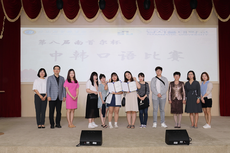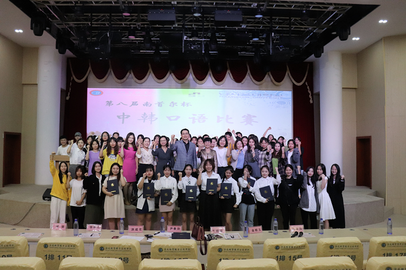 图5 中韩口语比赛部分参赛选手与领导合影