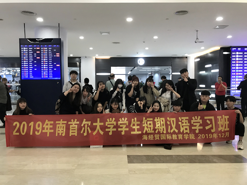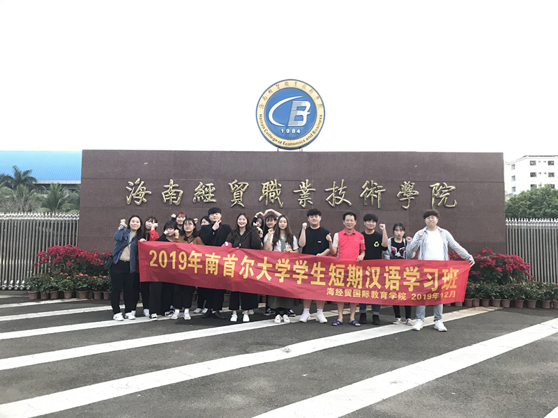 2019年12月16日晚,韩国南首尔大学学生一行15人顺利到达海南经贸职业技术学院开始为期三周的汉语短期研修学习。
