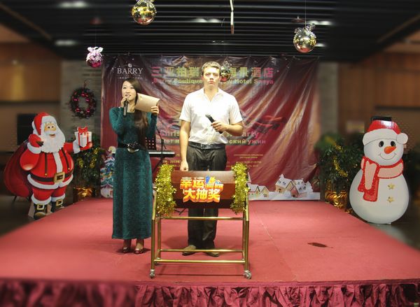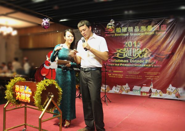 刚到酒店报到当日,正赶上酒店方举办圣诞晚会,我院的留学生ALBERT荣幸地被邀请担任该晚会的主持人,他活泼睿智的支持风格和娴熟的汉语,获得酒店员工和客人的赞许。