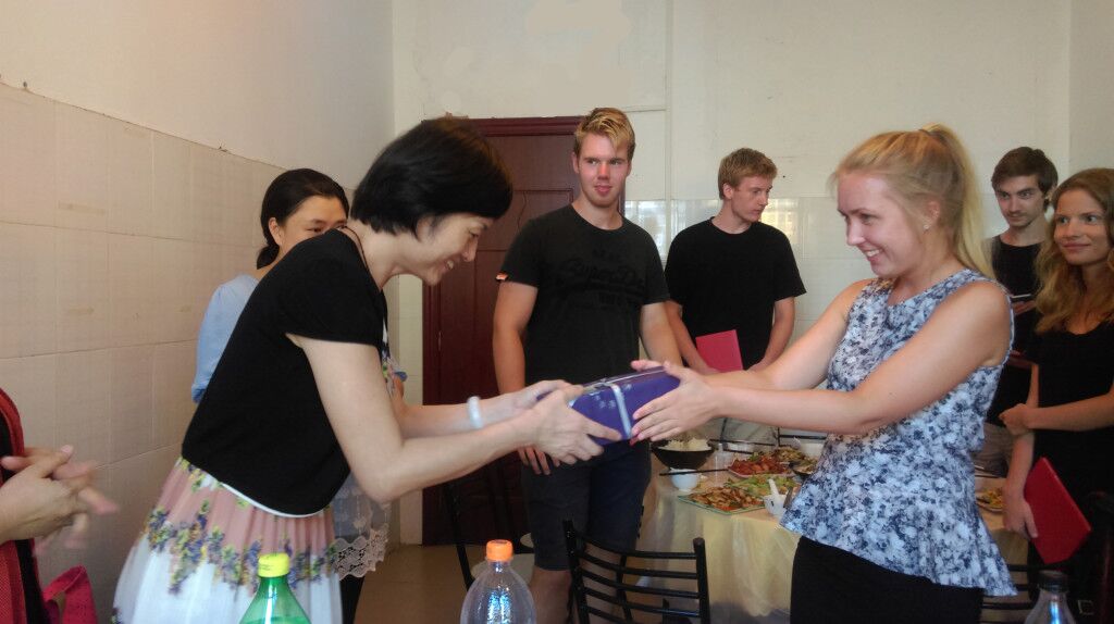 丹麦学生也回赠了礼物,希望中丹友谊长存。