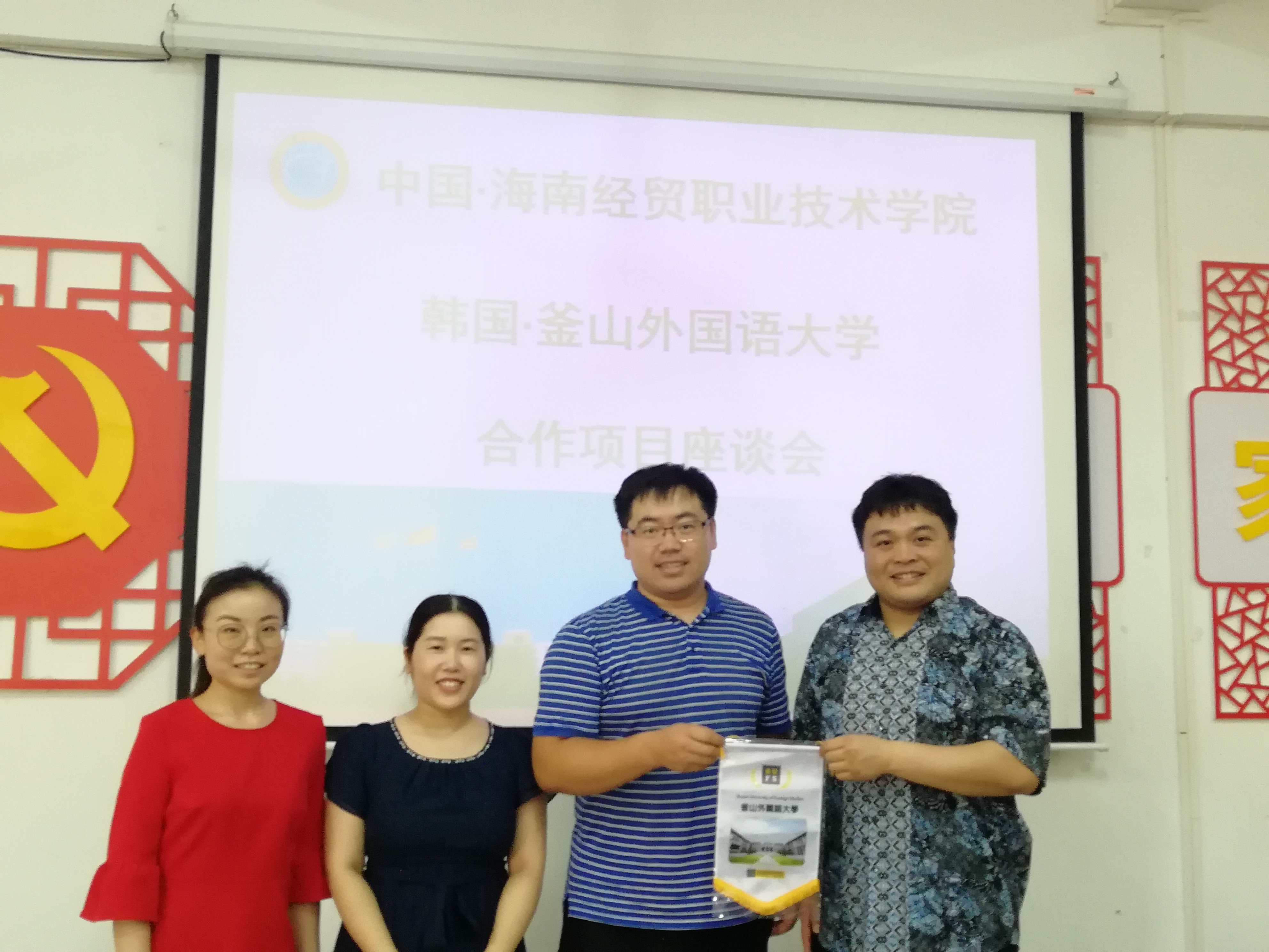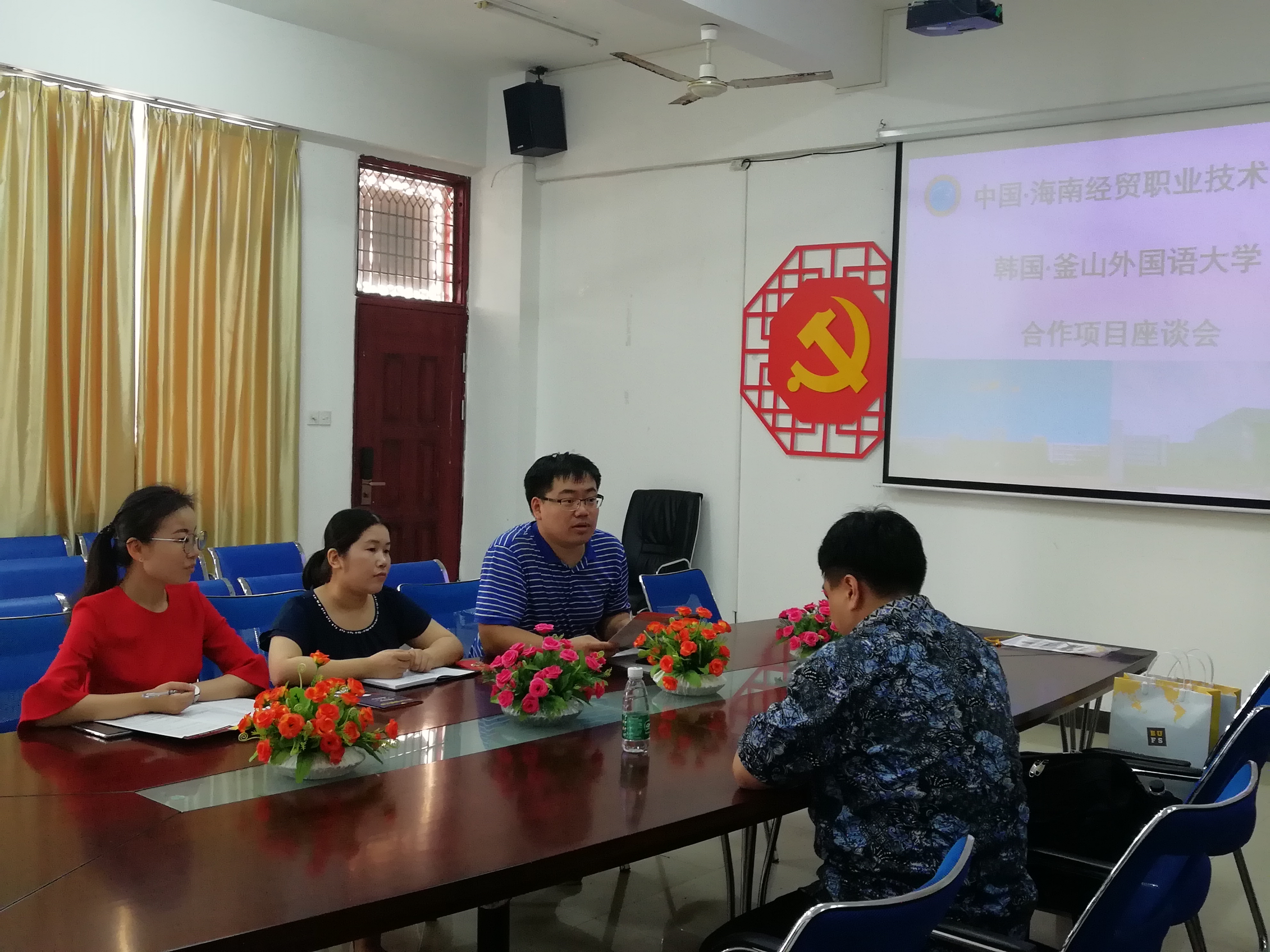 英国上市公司365党总支负责人兼副院长于勇、应用韩语教研室路冉老师、刘倩老师参加本次合作项目座谈会。