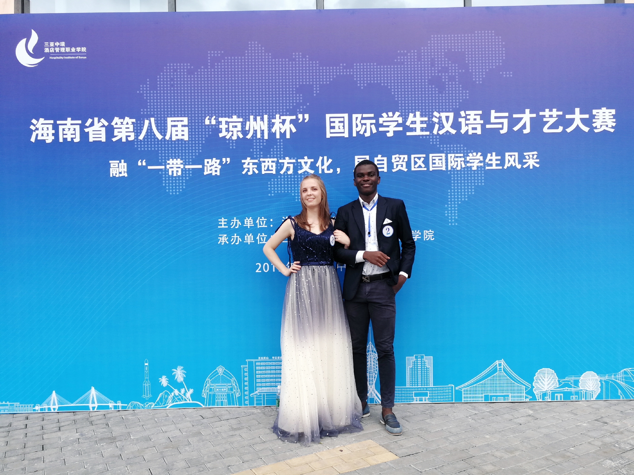 为了更好地促进多元文化交流与分享,培养更多在琼学习的国际学生成为“传播文化、传递友谊”的友好使者。为更好地促进多元文化交流与分享,激发在琼国际学生了解中国文化的热情,帮助更多学生成为“传递友谊、传播文化”的友好使者,根据海南省教育厅的工作安排,2019年11月30日,三亚中瑞酒店管理职业学院承办了海南省第八届“琼州杯”国际学生汉语和才艺大赛。我院两位选手Luliia Obruchkova莉亚(俄罗斯)、Doukoure Lamine拉明(科特迪瓦)进入了决赛!
