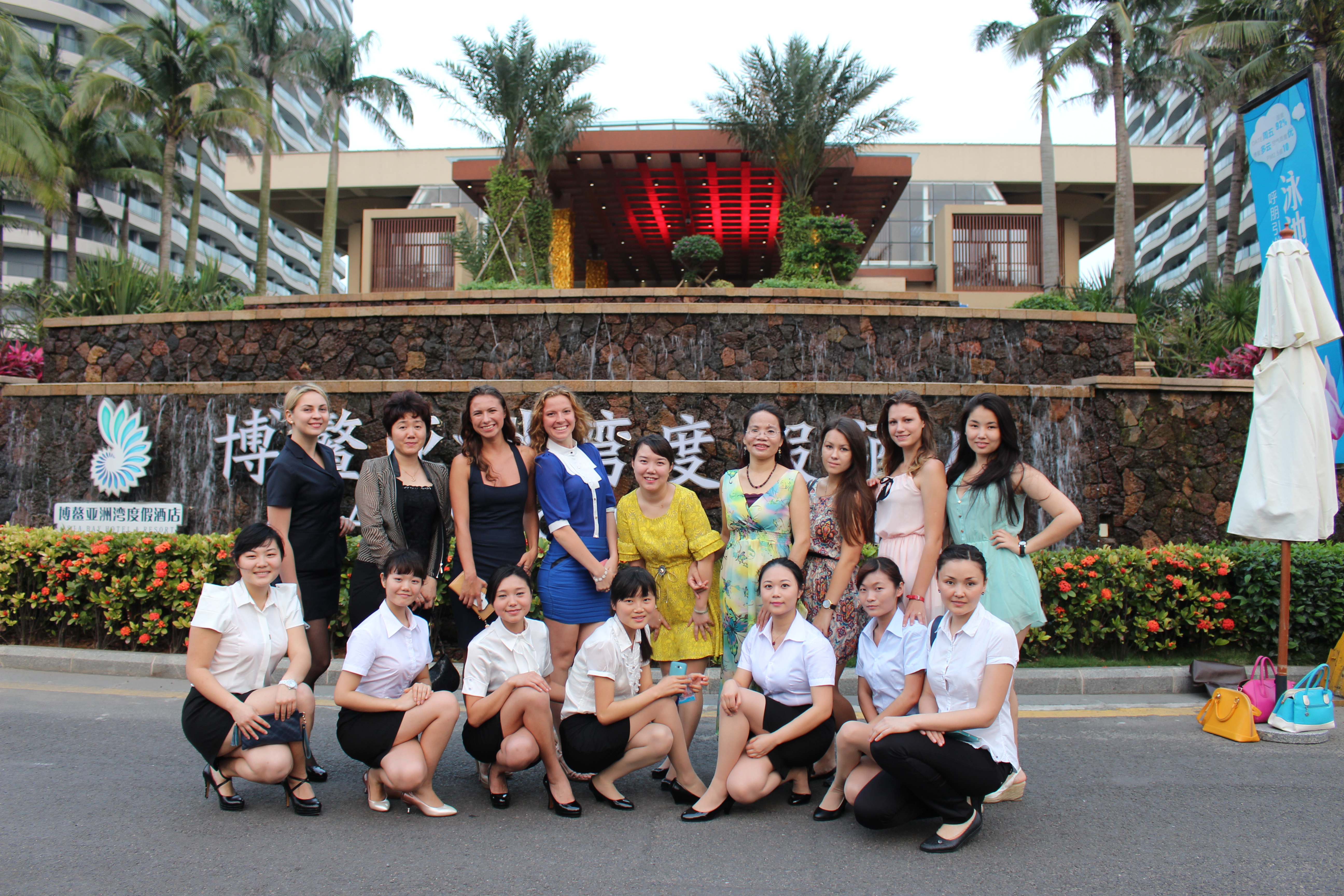 201446日下午,我院应用外语系12级俄语专业、商务英语专业的7名学生和俄罗斯8名留学生在李转风老师的带领下,前往博鳌亚洲湾度假酒店,开始了她们为期五天的第十三届博鳌亚洲论坛年会接待服务工作。我院师生的主要工作是从前厅部、餐饮部、房务中心到管家中心用俄语、英语进行的接待服务外宾。