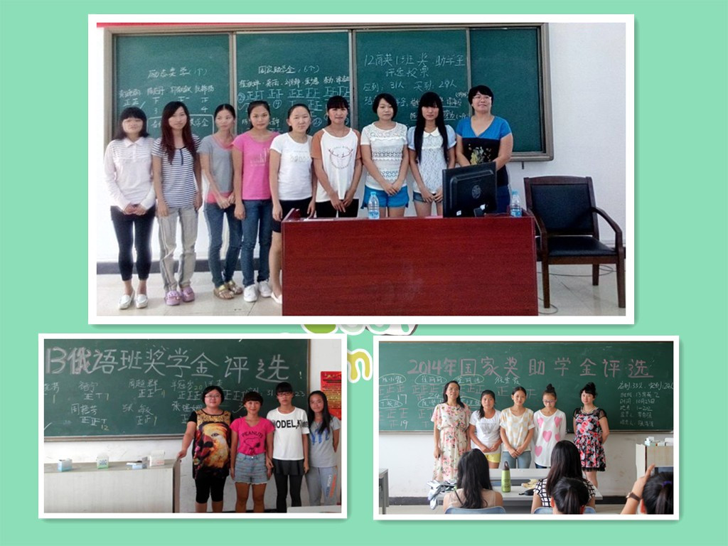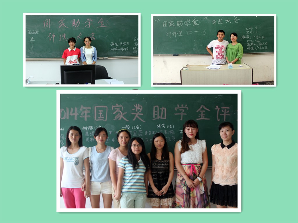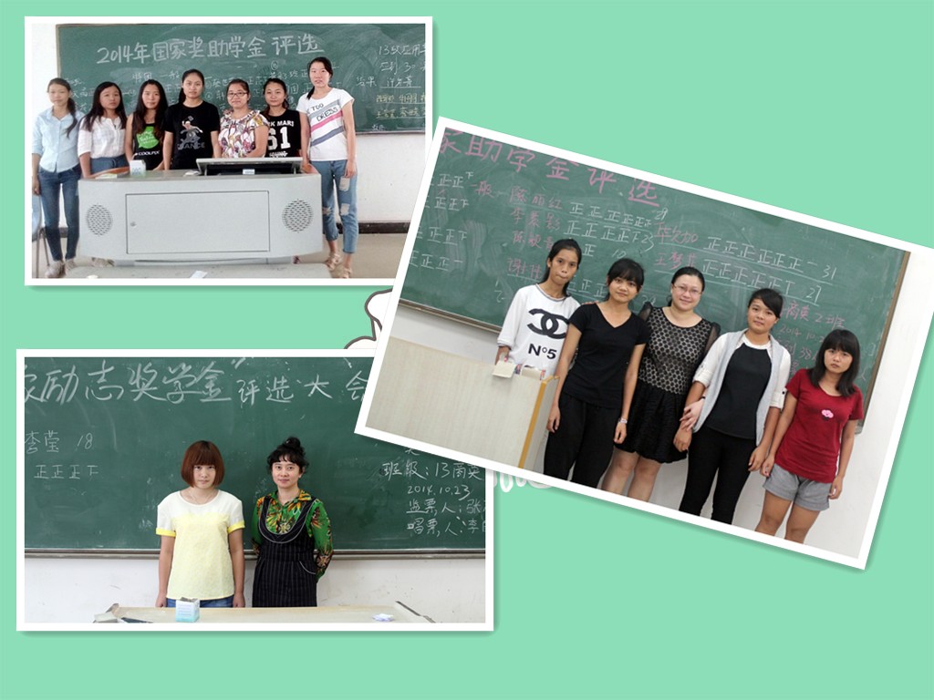 10月21日中午11:40左右,在1栋教学楼2楼的各大教室,应用外语系12级、13级、14级的同学进行了此项奖金的评选活动。出席评比活动的有各班校内导师、辅导员,团学成员和本班同学。会议由各班班长主持,评比为了公平公正,采取投票选举,由班长把各班参选人员名单公布在黑板上,同学们不记名投票,由系学生会纪检部同学唱票,记票。投票结束后,入选人和班级导师合影。而随着评比的结束,也让同学们几家欢喜几家愁,几千块钱对有的同学来说可能不算什么,但对贫困家庭的同学却是一比不小的数目。入选的同学脸上洋溢出喜悦的笑容,心想,这些奖金又可为家庭减轻一些负担!而没能被选上的同学则表现出了失落。而实际上,每次的选举都是一种考验,一种反映。选举大都是看同学们平时在班上的表现来评定。因此,未入选的同学应该好好想想,自己那些做的还不够好,不到位,而在以后的学习生活中认真改进,使自己更优秀。而那些获奖的同学则应该更加努力学习,对需要帮助的同学身处援助之手。对得起国家的补助,对得起同学的支持和鼓励。