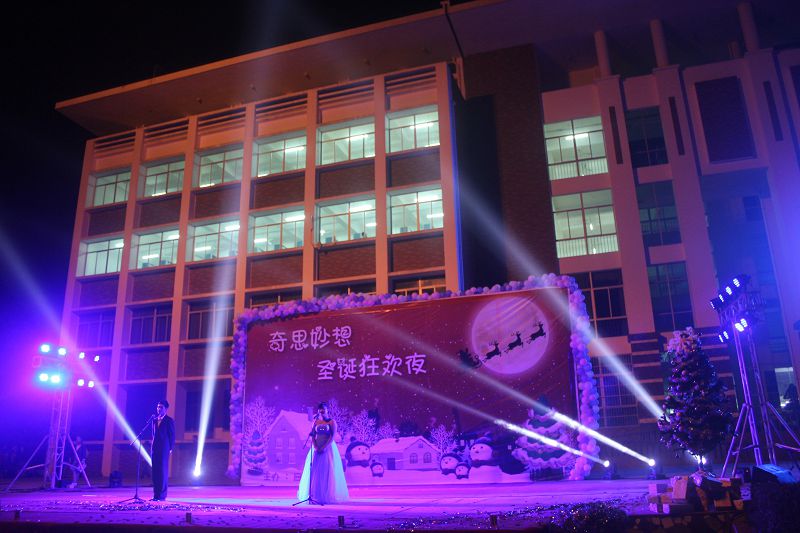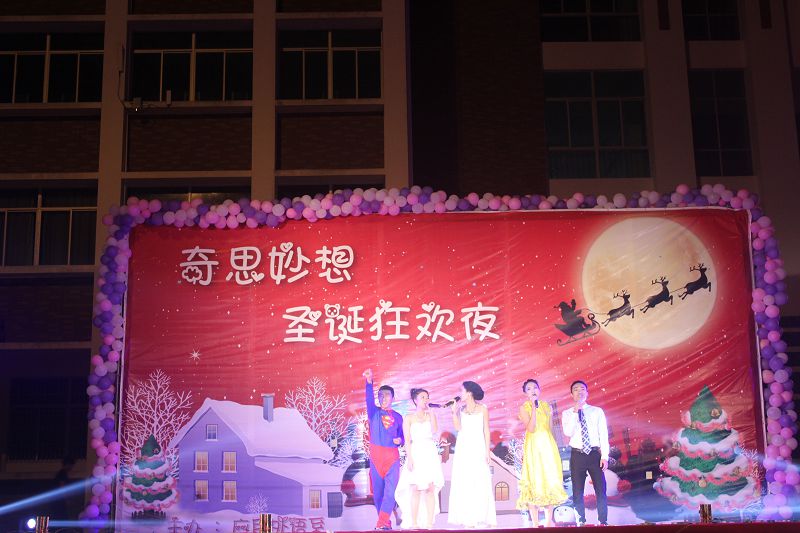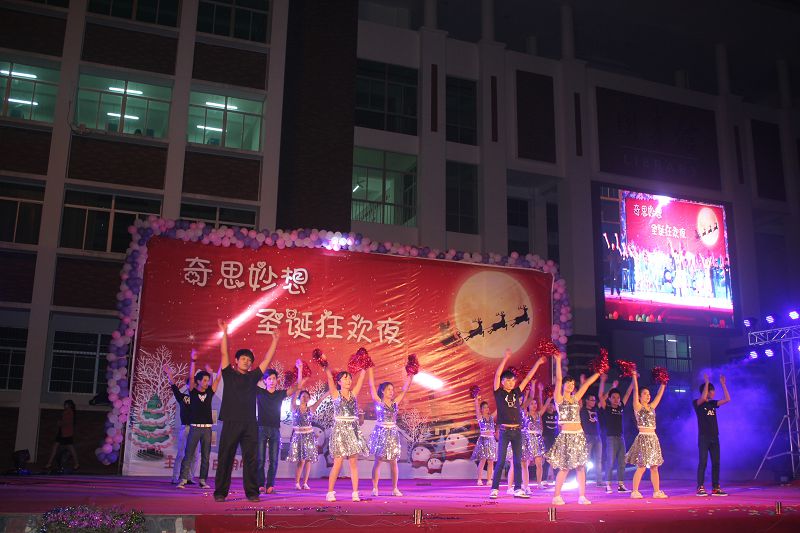 (应用外语系 赵俊贤报道)2013年12月22日晚7点30分,经贸广场上热闹非凡,由应用外语系全体师生筹备一个多月的圣诞晚会在此拉开帷幕。出席本次晚会的领导和嘉宾有学院党委徐畅副书记、应用外语系党总支朱琳书记、应用外语系张春玲主任、学工办副主任郑艳老师、辅导员郭蓉佳老师、代晓明老师以及就业干事李转风老师。
