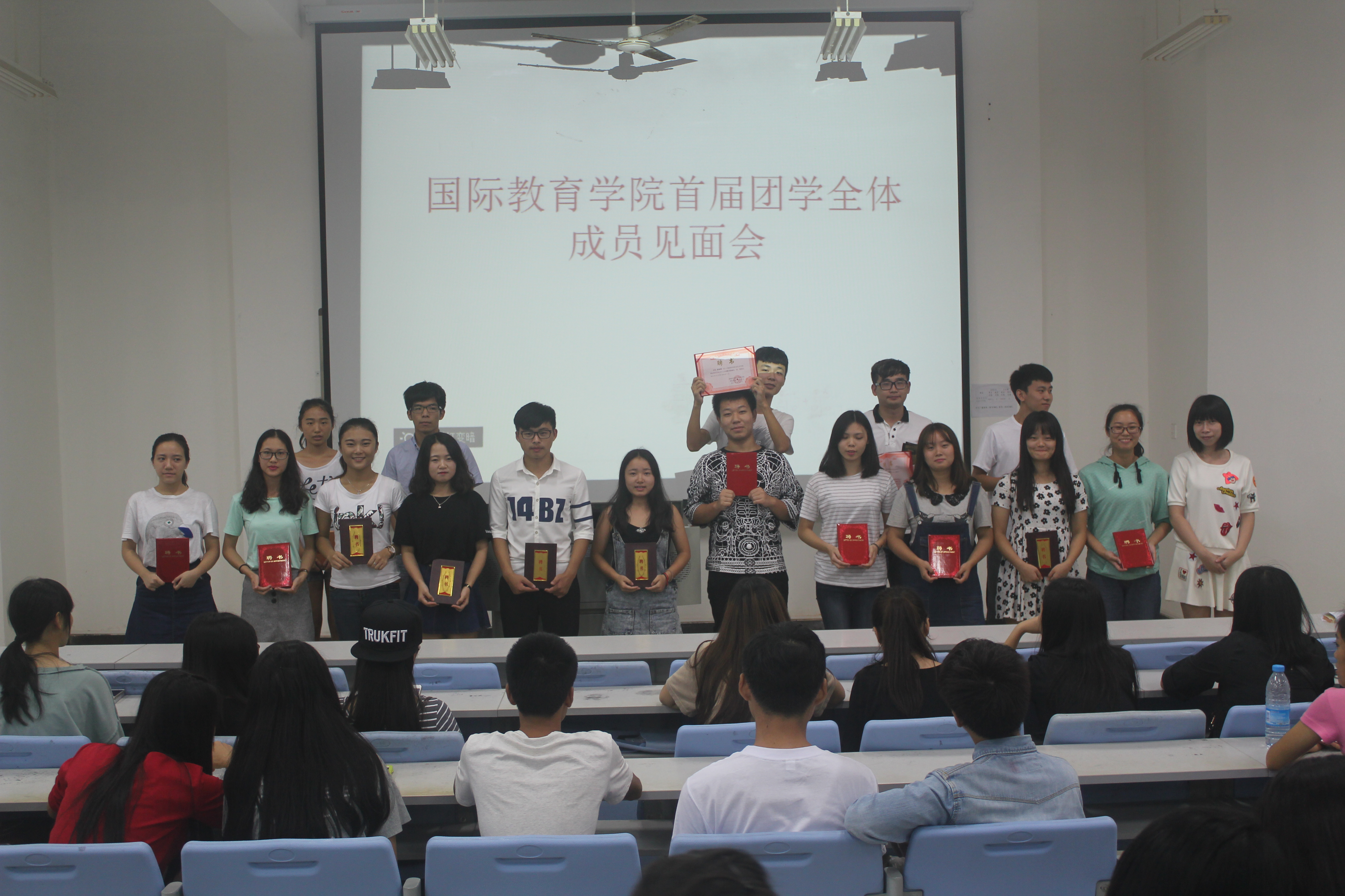 大会第二项,主持人向大家介绍了各个部门的部长及副部长。团总支书记郑艳老师为学生会干部颁发了“聘书”。鲜红的聘书上写满了过去这一年的酸甜苦辣,写满了他们进取的履历表,记下了他们从播种到收获一步步前进的历程。