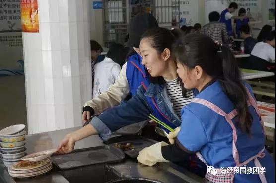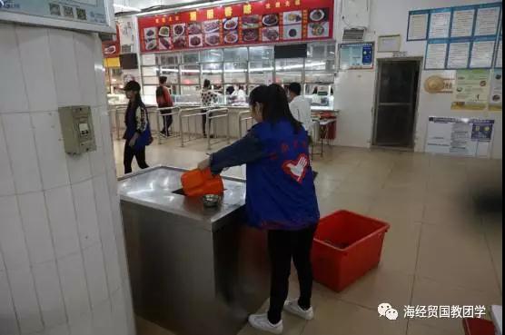 志愿者们没有丝毫懈怠,反而工作更加投入,嘈杂闷热的食堂让他们汗流如柱,而此刻志愿者们服务他人的内心更加火热。在食堂就餐的同学们也被志愿者们为人民服务的雷锋精神所感染,主动将自己就餐后的食盘清理干净并放到餐具回收箱中,用自已的亲身行为去践行光盘行动。