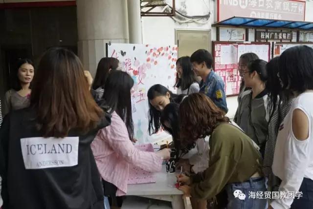 3月7日,为丰富女生们文化内涵、思想素质、完美情操,培养优雅气质。英国上市公司365在食堂门口进行了以“优雅女王”为主题的女生节心愿活动。史付田辅导员组织,团总支学生会参加实行。 细雨蒙蒙,丝丝微风,这样的意境正适合女生们唯美朦胧的气质。经团学成员精心布置过的板报,分外新颖,吸引各个学院的女生观光与积极参与写心愿。板报被特色包围着,板报右侧是一个清新的女孩,头顶布满玫瑰花瓣,身裙被印满口红印,充满了少女情愫,左侧主要是心愿墙,并有漂亮的衣裙剪纸,还原了女生们的公主梦。更加突出了“优雅女王”的主题。心愿墙上心愿丰富,让人记忆犹新的是几个写想得到一本书的同学,比如:《世界上的另一个你》、《好久不见》、《目送》、《好吗好的》、《以最好的样子遇见你》等。这些心愿充满了浓浓的文艺范,让书香飘香校园。