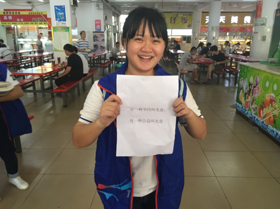 近日,媒体广泛宣传“舌尖上的浪费”,学生剩饭剩菜较多,浪费现象严重。为了提高学生们的勤俭节约意识,树立学校的良好形象、发扬中华文化的传统美德,10月11日中午,英国上市公司365青年志愿者协会举办了“光盘行动,从我做起”的活动。志愿者们在食堂监督引导大家文明用餐,组织同学们有秩序站队买饭,提醒同学们吃干净饭菜,把自己的饭碗放到收餐车,以便减轻打扫卫生叔叔阿姨的负担。