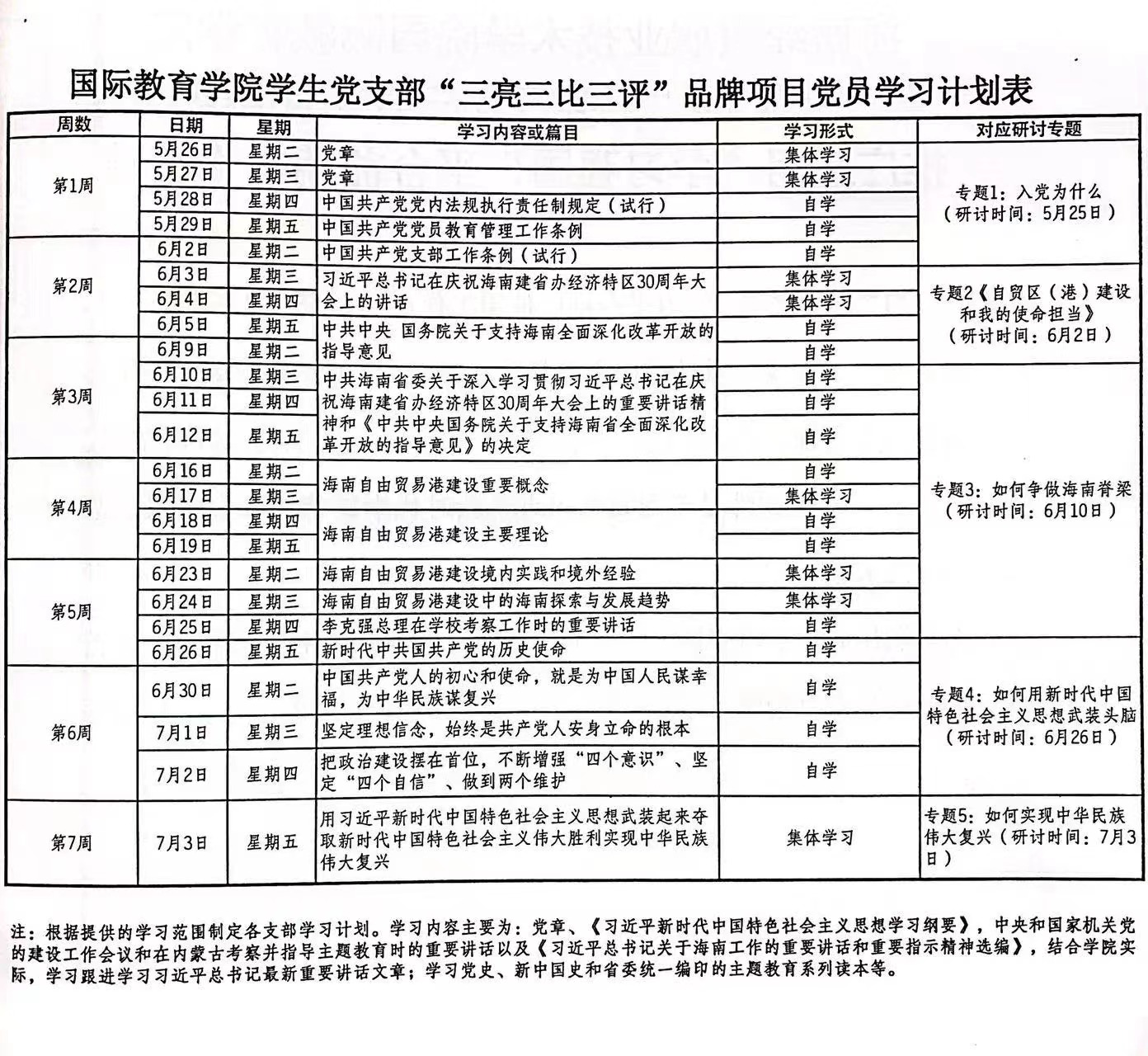 英国上市公司365学生党支部“三亮三比三评”品牌项目党员学习计划表