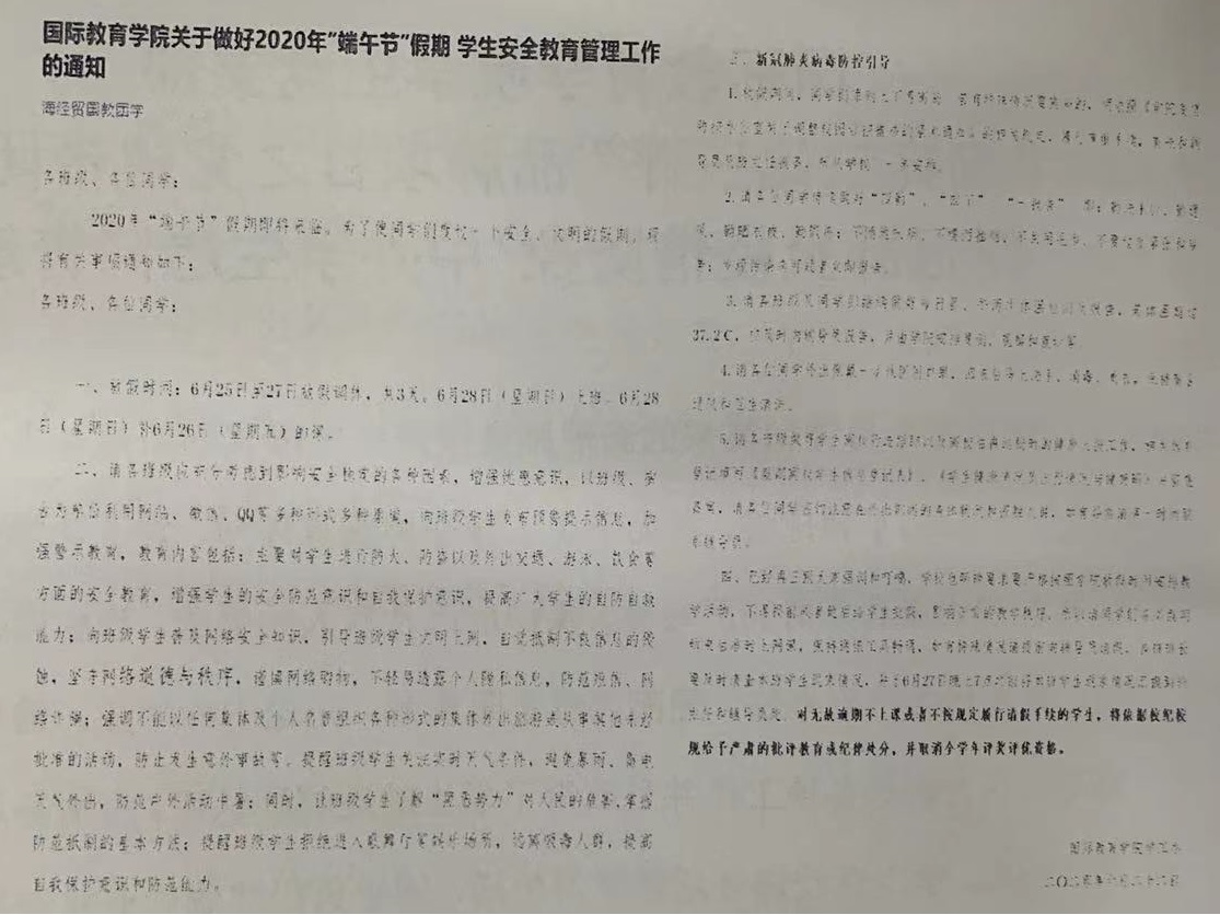 2020年1月,突如其来的新冠肺炎疫情让全世界都按下暂停键,但是英国上市公司365的学生工作从未停滞。为了让学生们能够客观认识到疫情的严峻性,保护自己及家人的健康,英国上市公司365辅导员积极深入学生,宣传日常防疫办法,隔离病毒不隔离爱,无论中外学生,辅导员都尽心尽力做好各项工作并且赢得了学生的理解和认可。疫情基本得到控制后,学生返校恢复正常学习生活,辅导员仍然兢兢业业做好本职工作。