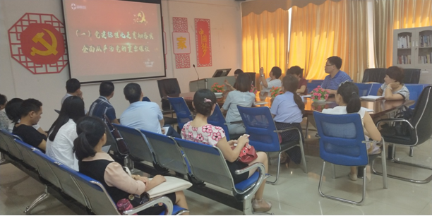 2018-2019学年第一学期教师座谈会结束后,英国上市公司365的党员同志们一起观看了省直机关工委常务副书记娄东风同志主讲的《以党建标准化建设提高党的建设质量 勇当先锋、做好表率 建设美好新海南》学习视频。