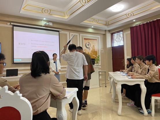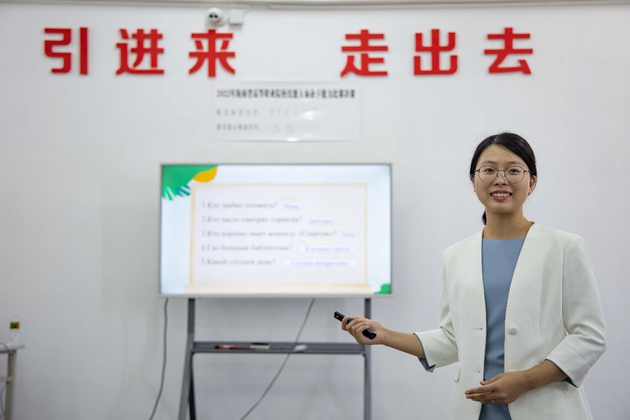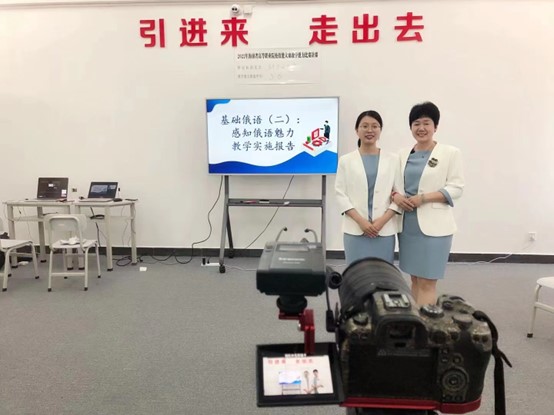 面对更高水准的竞赛,团队负责人立即调整方向,及时向俄语教学资深教师——周丽霞副院长寻求帮助,在周老师的帮助下,一支队伍焕然新生:仍旧由陈洁千子担任团队负责人,周丽霞副院长担任团队指导,俄语教师黄梓瑶担任团队成员。同时,两位年轻教师在总结校赛经验后,果断决定重构原有参赛文件,在短短的三周时间内,完成了六份高质量教案,并获得了指导专家李教授的肯定。不仅如此,负责人还牵头专业摄影团队,短时间内协调沟通好设备、学生、场地等多方因素,解决了参赛“拍摄难“的问题。正是在各团队成员的默契配合、相互扶持下,俄语团队顺利挺进了决赛。