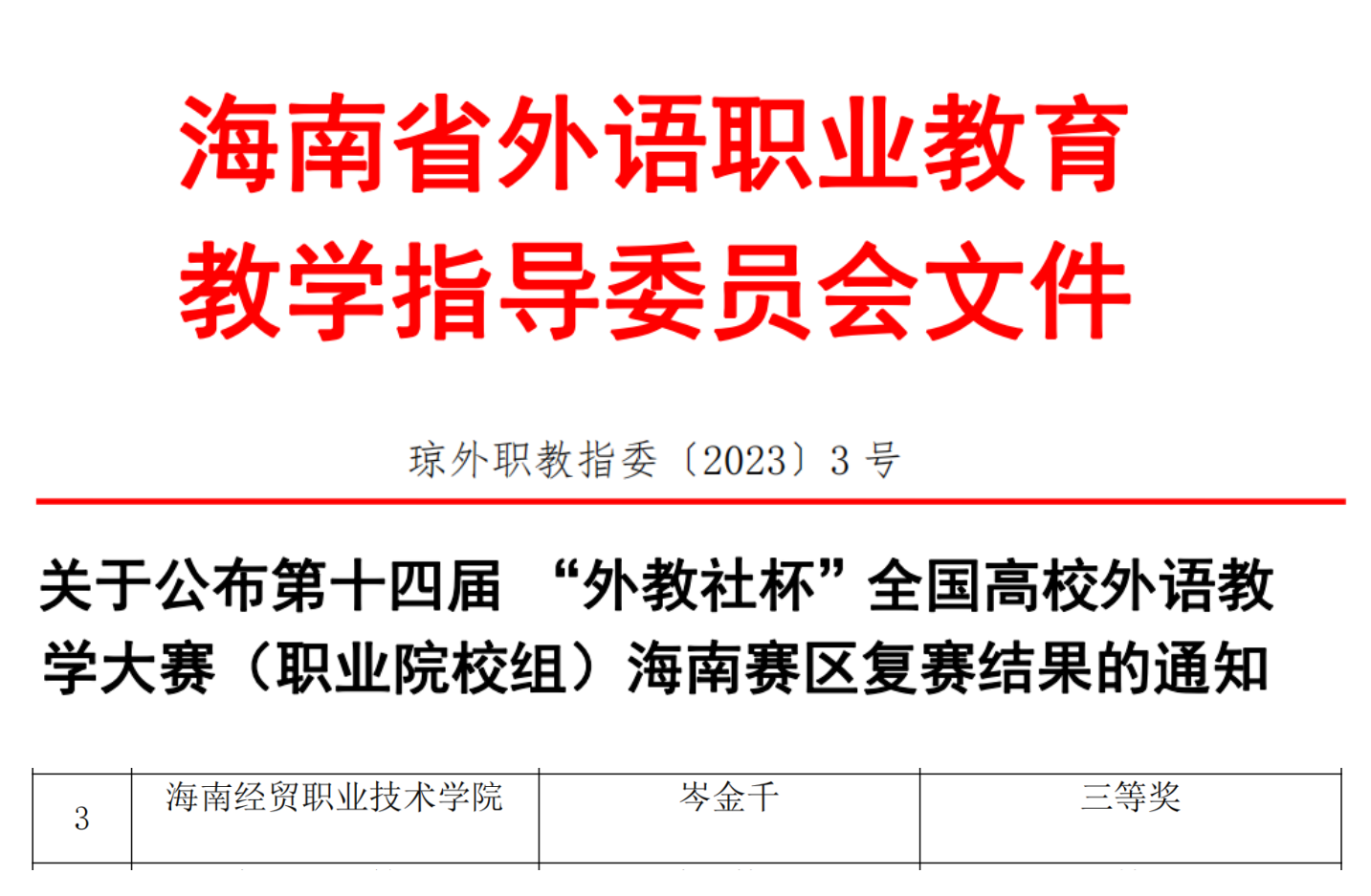【喜报】我院教师喜获第十四届 “外教社杯”全国高校外语教学大赛(职业院校组)海南赛区复赛三等奖