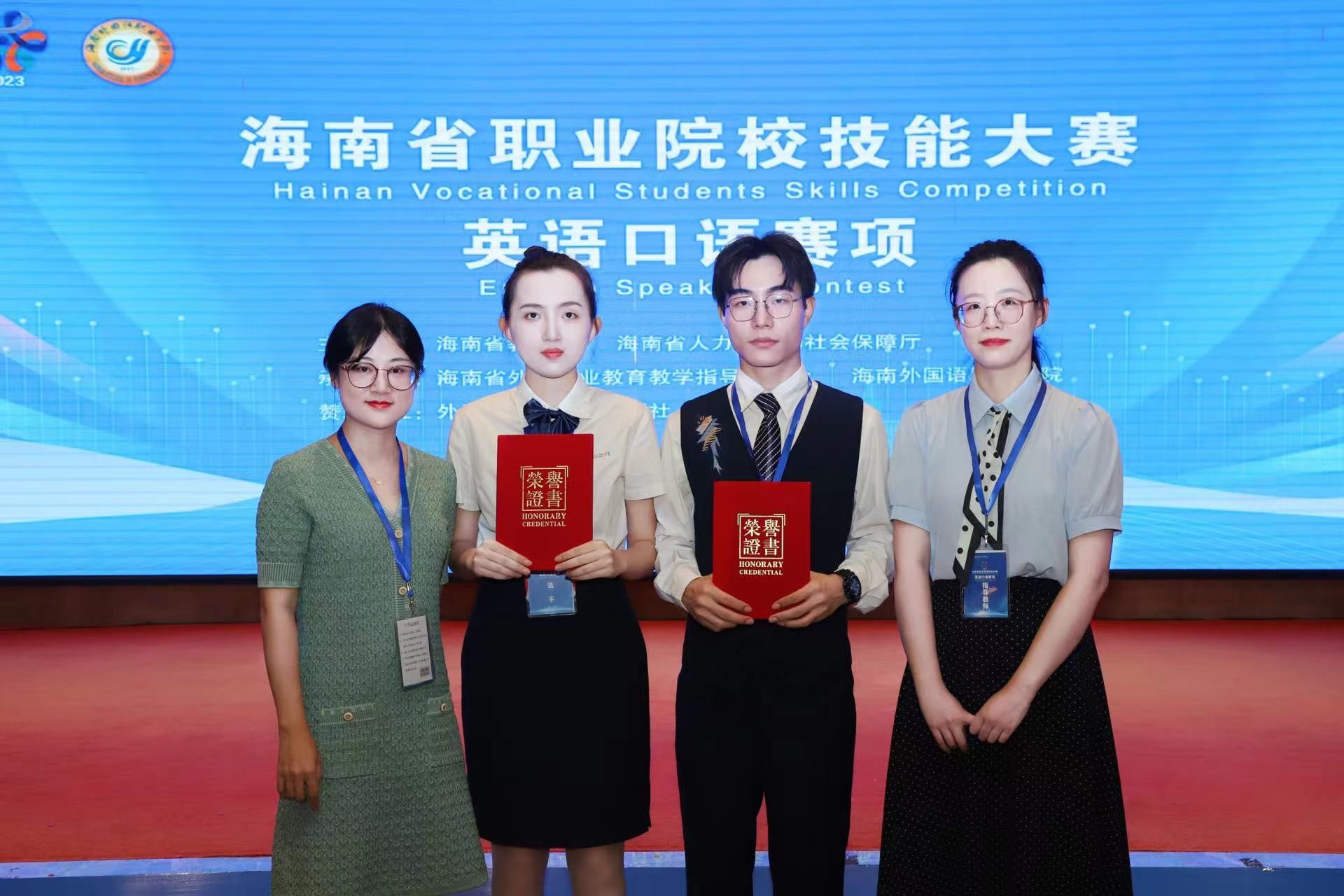 2023年10月25日至27日,海南省职业院校技能大赛英语口语赛项在文昌举行,我院李嘉辉、林明捷两位学生代表学校参赛。在英国上市公司365青年教师邸芸菲、程帅的指导下,两位选手以标准的发音、精彩的演讲、出色的辩论分别获得非英语专业组第二名(一等奖),专业组第二名(二等奖)。