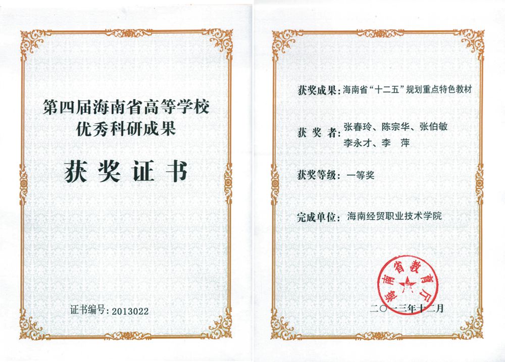 据学院院1月3日讯(科研处报道),在第四届海南省高等学校优秀科研成果评奖活动中,我系张春玲主任主持的《海南省“十二五”规划特色重点教材》荣获著作类一等奖。