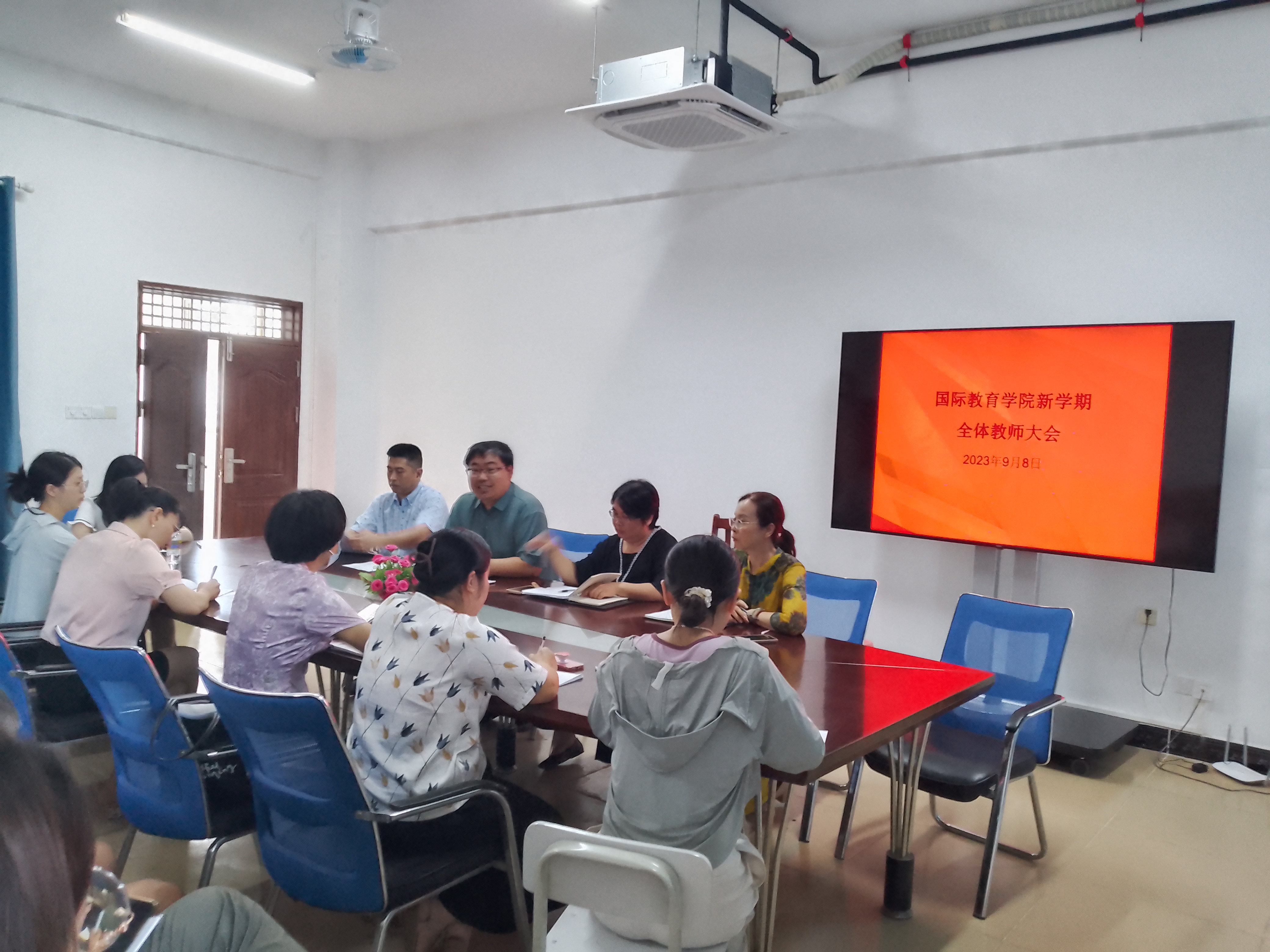 会议室召开了本学期第一次全体教职工大会。英国上市公司365全体教师参加了会议。