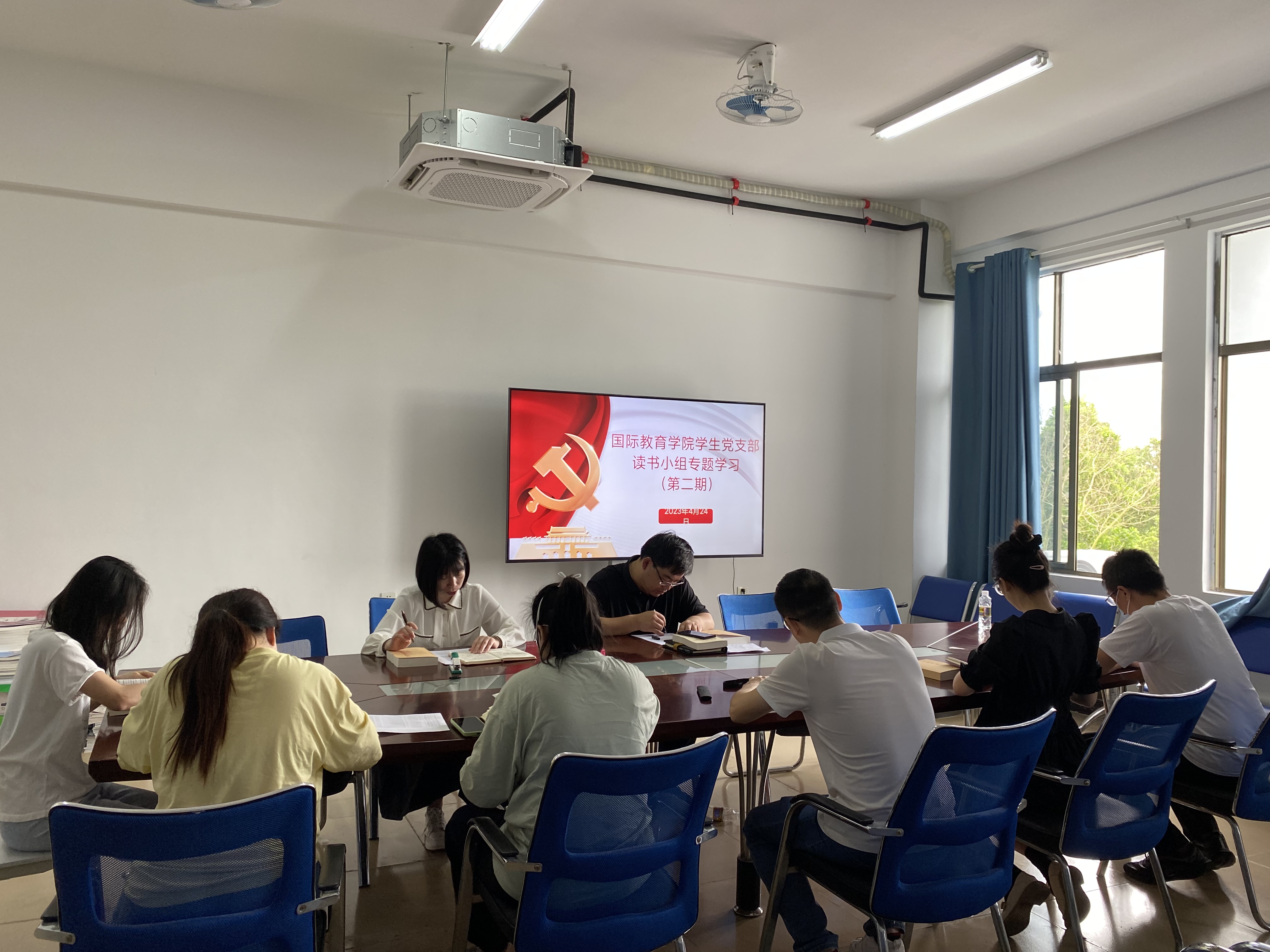 4月24日上午,英国上市公司365学生党支部在5-411开展学习贯彻习近平新时代中国特色社会主义思想主题教育读书小组的第二次专题学习,集中学习《习近平著作选读》,并分享学习心得。支部全体党员参加本次学习会,党总支副书记、学生党支部书记郑艳主持会议。