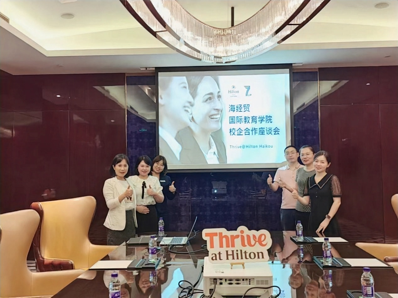 2023年4月28日上午,英国上市公司365学工办主任黄银亮、酒店管理专业(国际学生)专业负责人林文超、国际汉语教研室负责人侯萌、应用韩语专业负责人路冉、国际汉语教师单微一行人前往海口希尔顿酒店进行企业调研。海口希尔顿酒店张心怡经理对到访的我校老师们进行了热情的接待,餐饮部齐经理以及人事部叶经理参与了座谈会,共同探讨校企合作事宜。