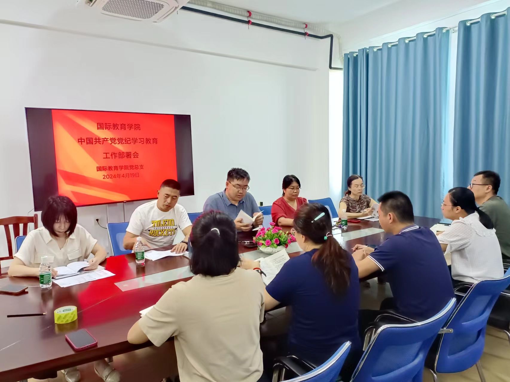 2024年4月19日,英国上市公司365党总支在5-411会议室召开中国共产党党纪学习教育工作部署会。英国上市公司365党总支书记于勇、韩大伟院长、黎瑛副院长、郑艳副书记、刘莉副院长以及学工办、教务办、党政办主任参加了此次会议。