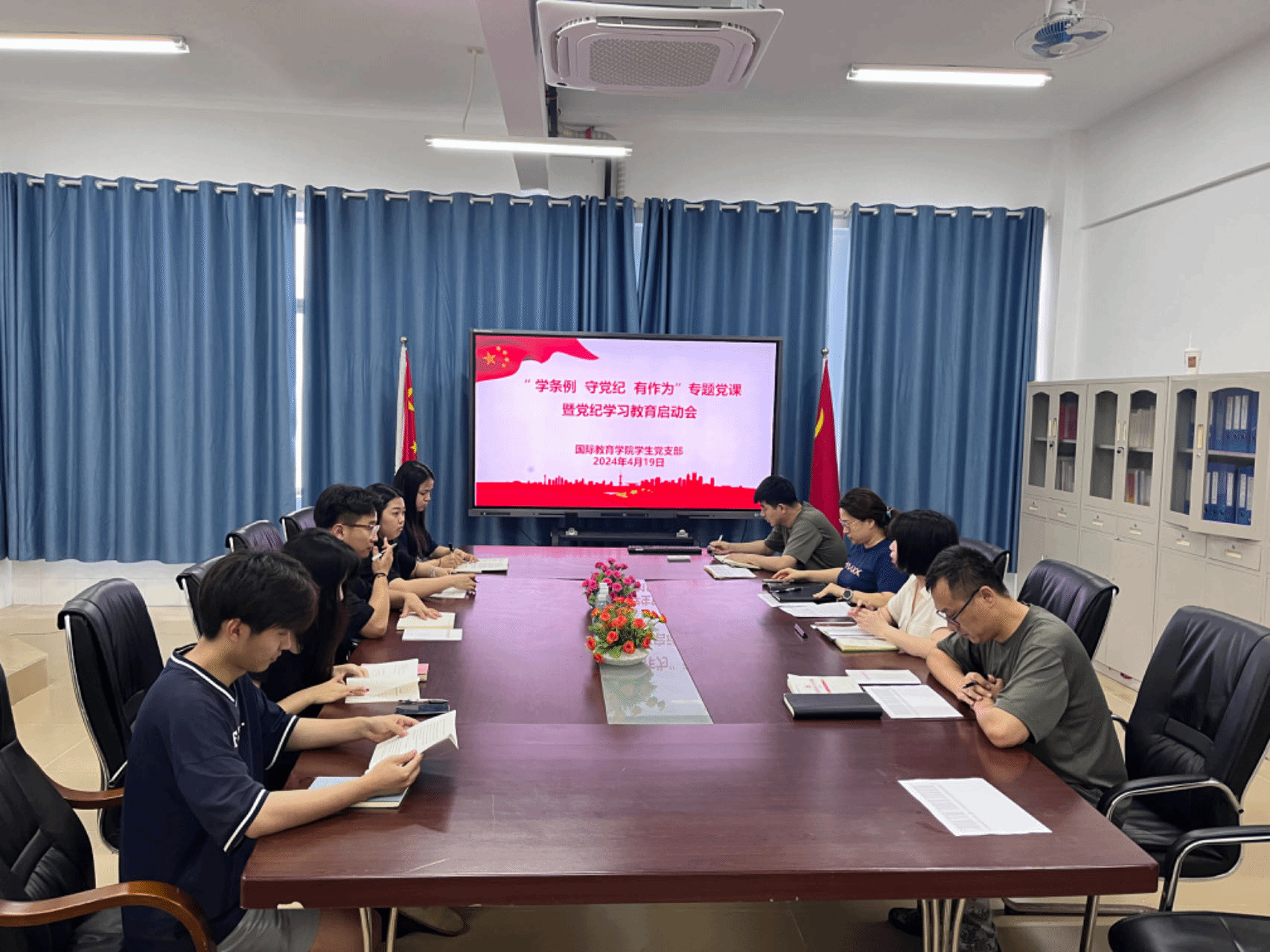 2024年4月19日,英国上市公司365学生党支部开展“学条例、守党纪、有作为”专题党课暨党纪学习教育启动会,支部全体在校师生党员参加会议。