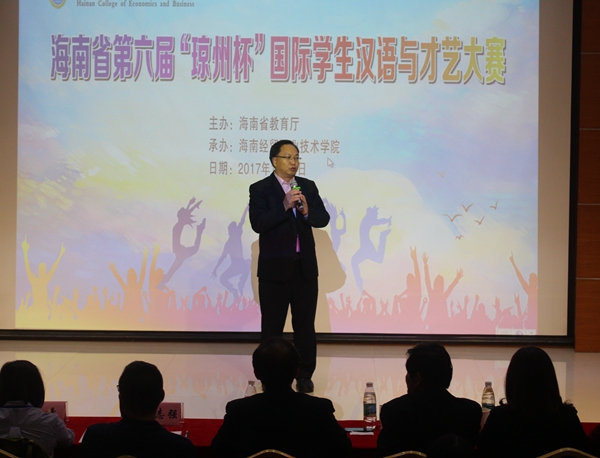 海南省教育厅国际合作交流处副处长黄连平,海南经贸职业技术学院党委书记张继友出席大赛开幕式。张继友对参加决赛的22名国际学生表示热烈欢迎,并介绍了海经贸的发展以及国际学生的情况。他给在场师生宣讲党的十九大精神,深刻剖析加强中外合作发展的必要性。他希望各院校多加强合作,多培养国际化人才;希望各位选手取得好成绩,赛出水平,赛出风格。