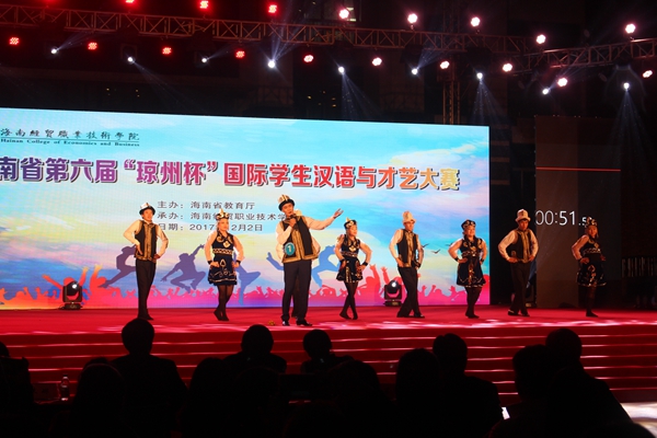 本校12与3日讯(英国上市公司365报道)2017年12月2日,由海南省教育厅主办、海南经贸职业技术学院承办的海南省第六届“琼州杯”国际学生汉语与才艺大赛完美落幕。来自海南11所本科及高职院校共22名国际学生选手从初赛中脱颖而出,晋级决赛,同台展示了各自的才艺和汉语水平。海经贸吉尔吉斯坦籍国际学生达斯坦表现优异,荣获本次大赛一等奖的第一名。于勇老师荣获优秀指导教师奖,海南经贸职业技术学院获得优秀组织奖。